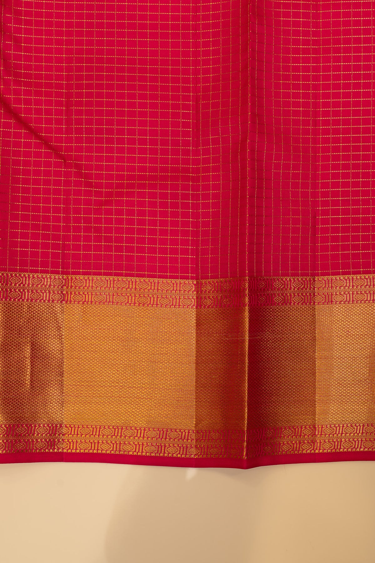 This Orange Zari Checks Pure Kanchipuram Silk Saree showcases exquisite craftsmanship with its elegant zari check pattern woven into rich silk fabric. The vibrant orange shade combined with the shimmering zari work creates a sophisticated look, ideal for festive and formal occasions. Experience the luxurious feel and timeless tradition of authentic Kanchipuram silk in this stunning saree.