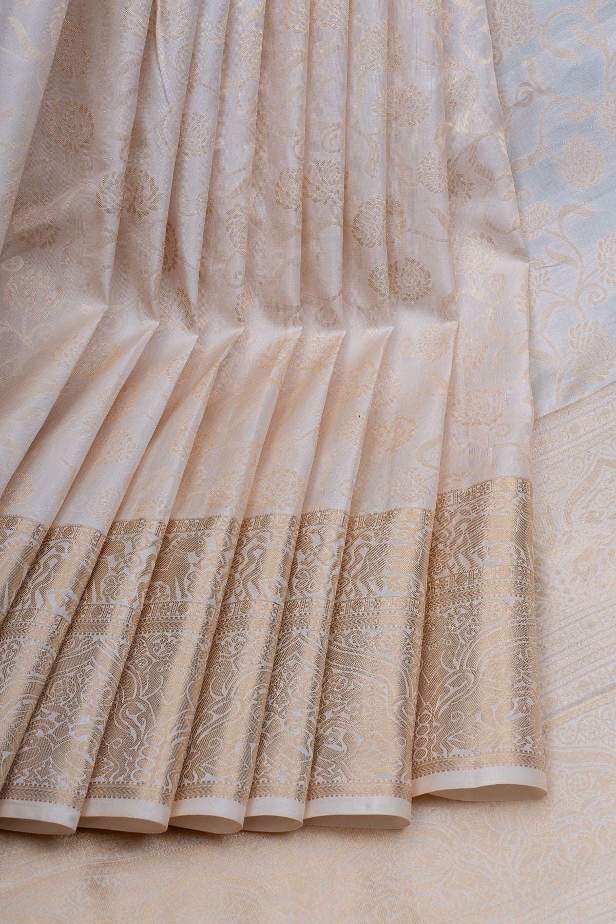 Ivory and gold floral brocade pure kanchipuram silk saree