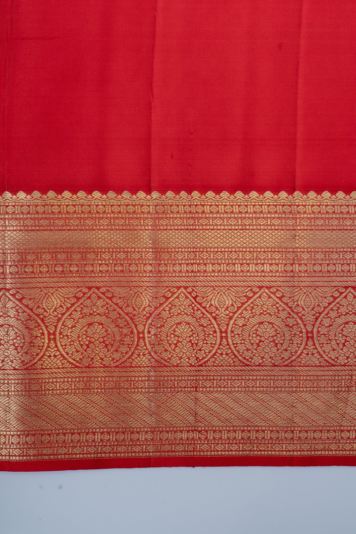 Champagne gold and red floral brocade pure kanchipuram silk saree