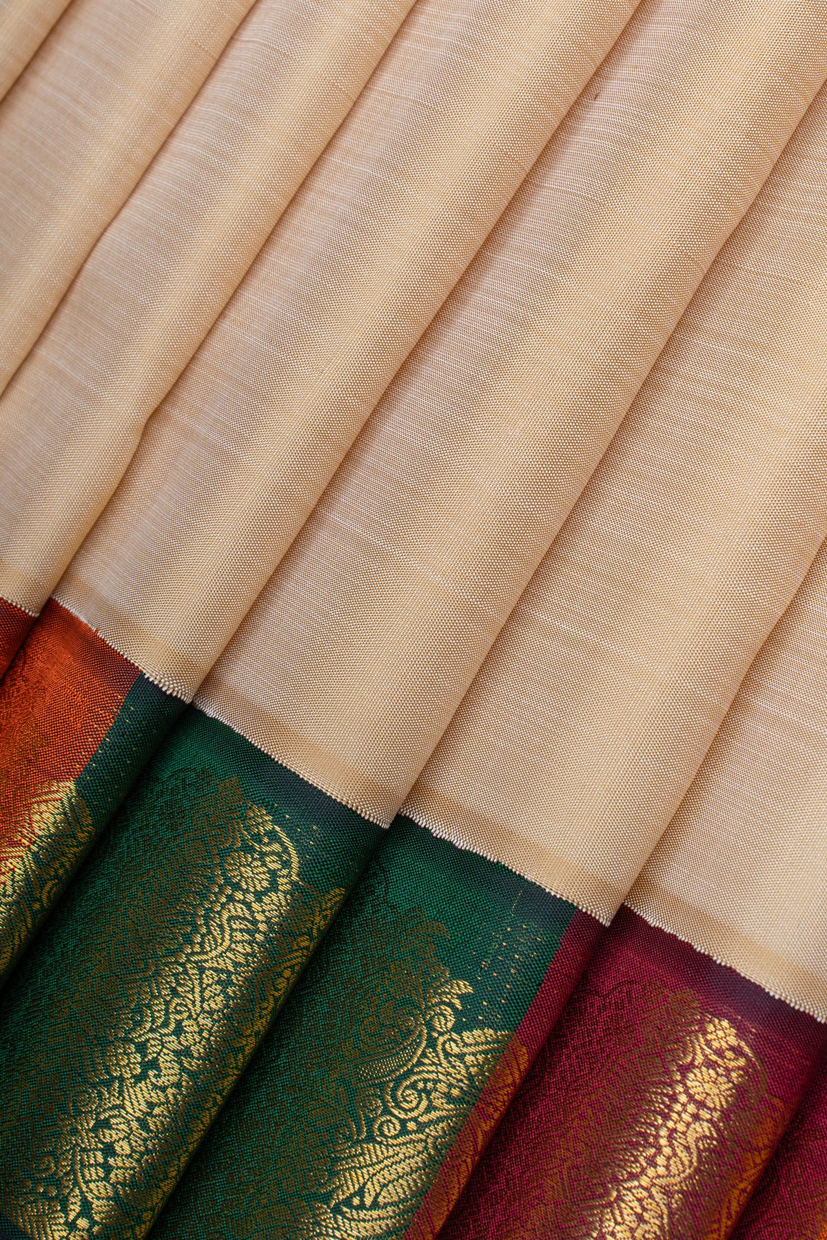 Cream multi borders pure kanchipuram silk saree