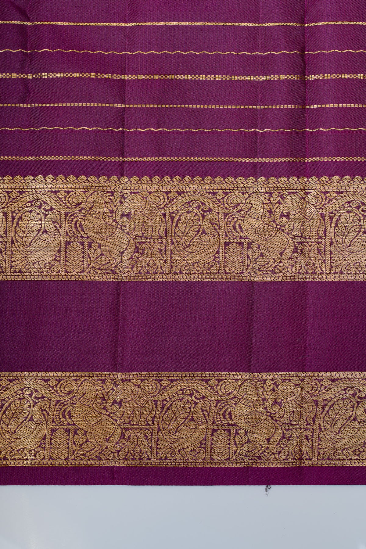 Experience timeless beauty with this enchanting Mehendi Green Neli Stripes pure Kanchipuram silk saree. Woven from authentic Kanchipuram silk, this saree showcases delicate neli stripe patterns that add visual depth and movement to the fabric. The soft mehendi green shade evokes tradition and grace, making it an ideal choice for weddings, engagements, and festive celebrations. The natural sheen of pure silk combined with the intricate striped detailing creates a sophisticated aesthetic that transcends seasons. A testament to centuries-old weaving mastery, this saree promises lasting quality and an investment in timeless elegance for the discerning wearer.