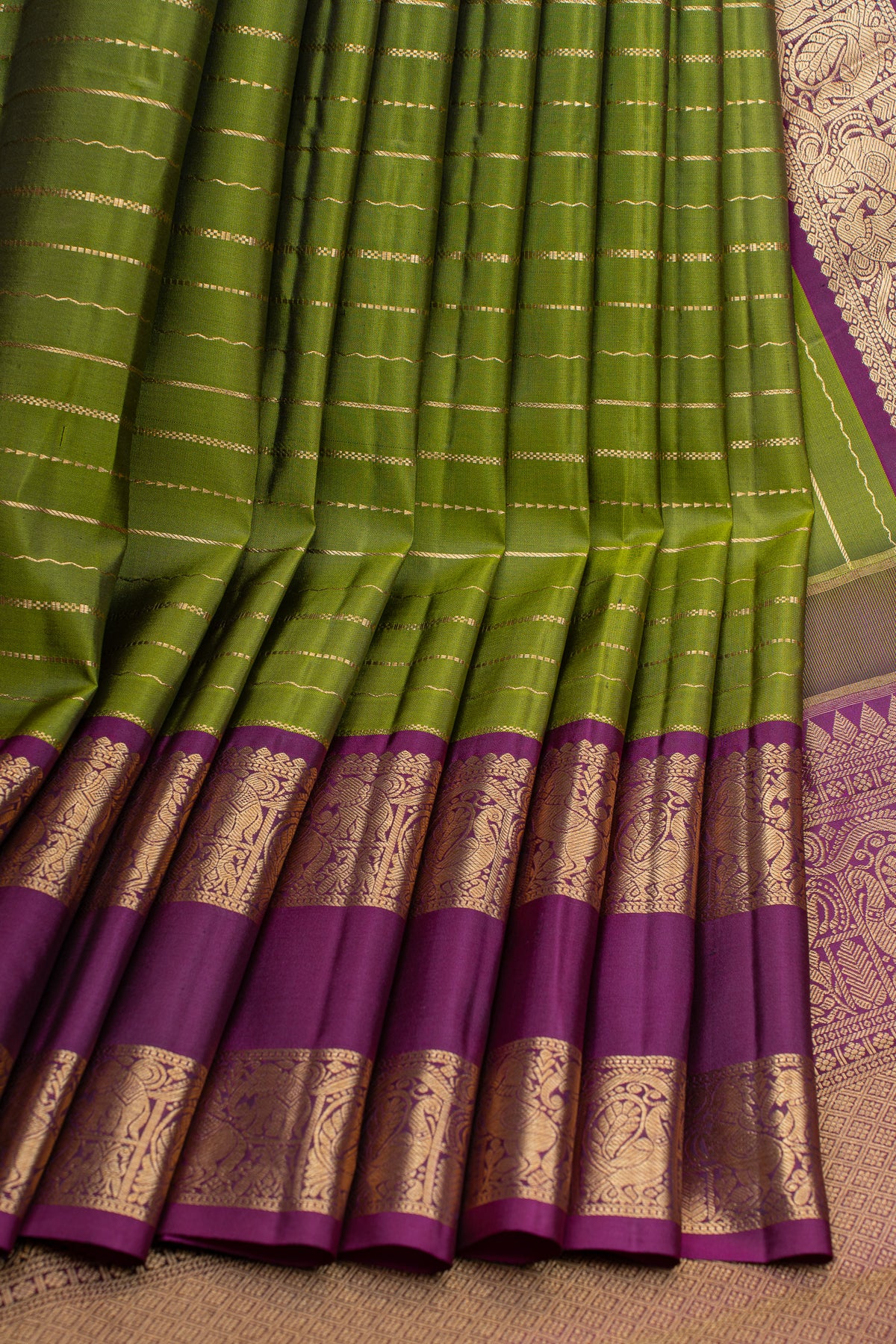 Mehendi green neli stripes pure Kanchipuram silk saree