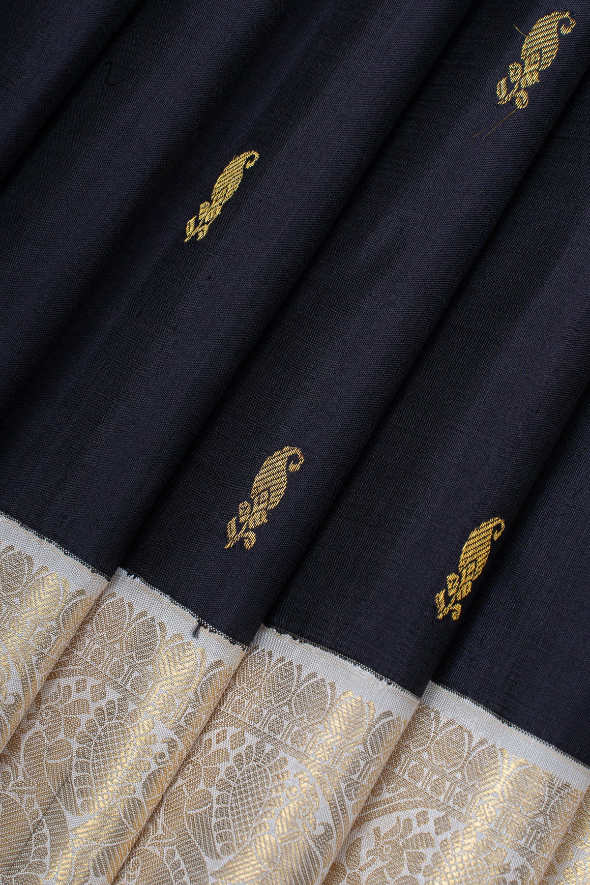 Black and ivory traditional pure kanchipuram silk saree