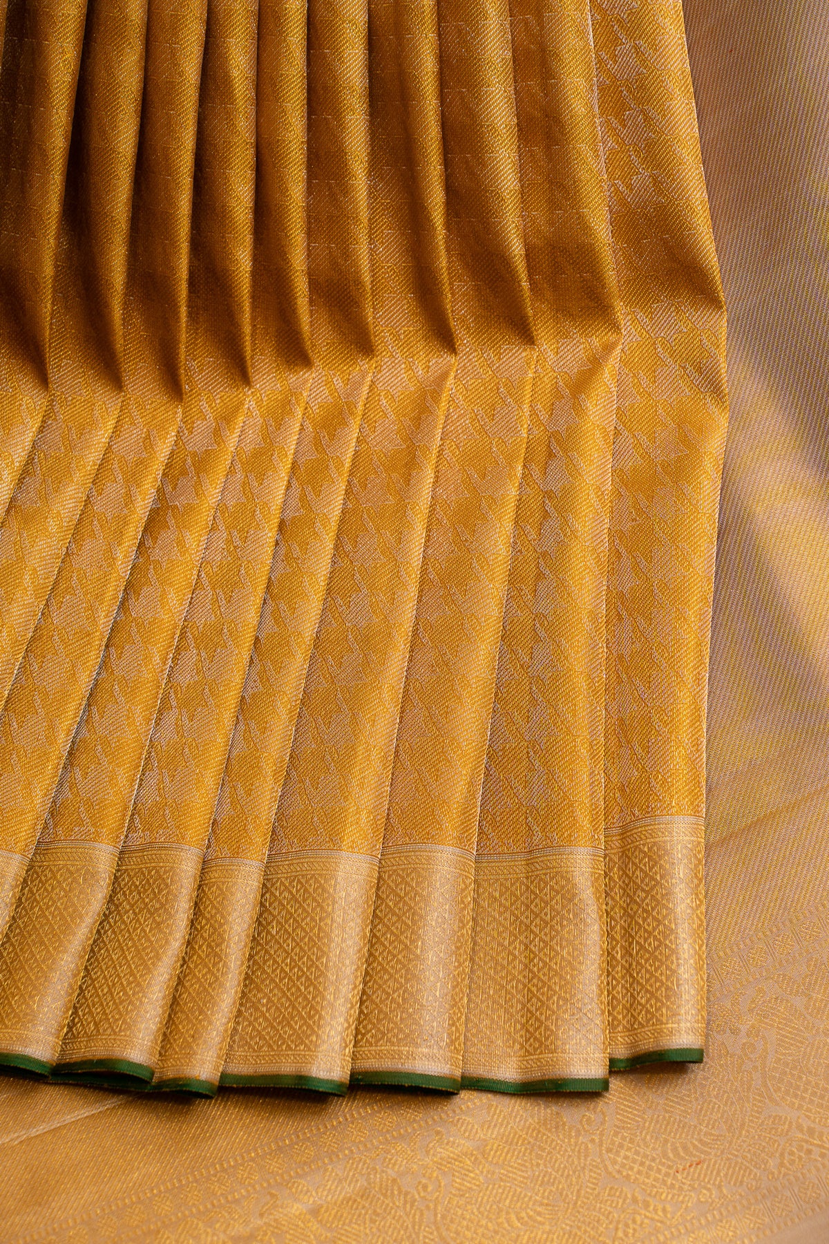 Gold houndstooth brocade pure Kanchipuram silk saree