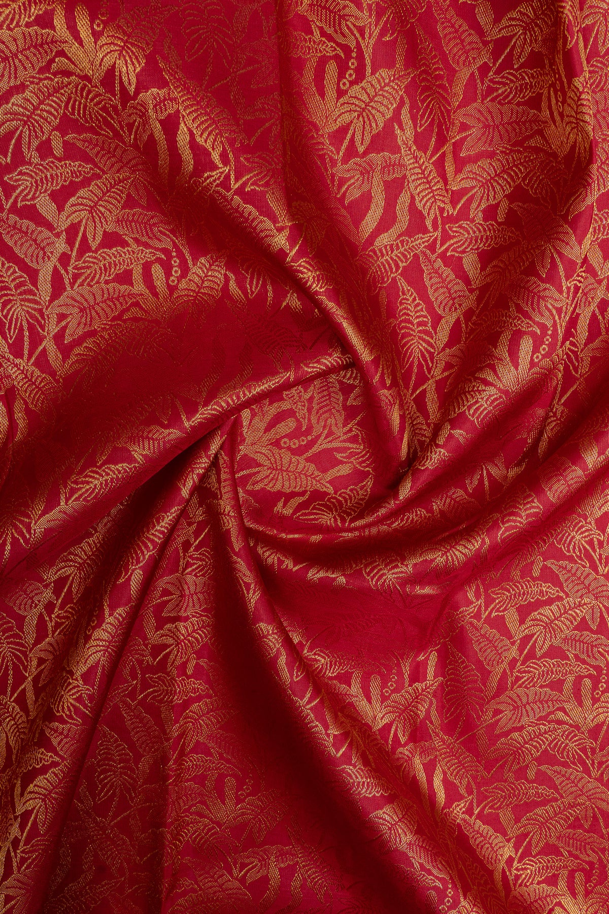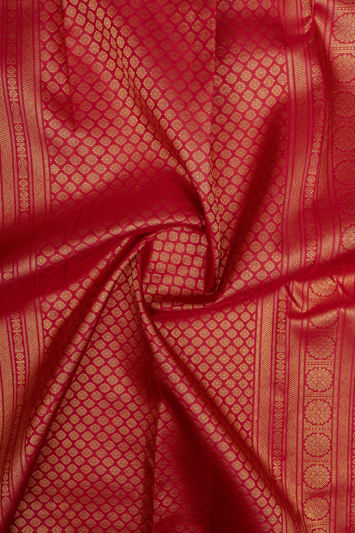 Exude timeless elegance with this red brocade pure Kanchipuram silk saree. The vibrant red hue is beautifully enhanced with intricate brocade work, adding depth, texture, and a regal charm.Woven from luxurious pure Kanchipuram silk, this saree features a smooth texture, lustrous sheen, and graceful drape. Perfect for weddings, festive occasions, and grand celebrations, it showcases the skill and artistry of traditional South Indian weaving.