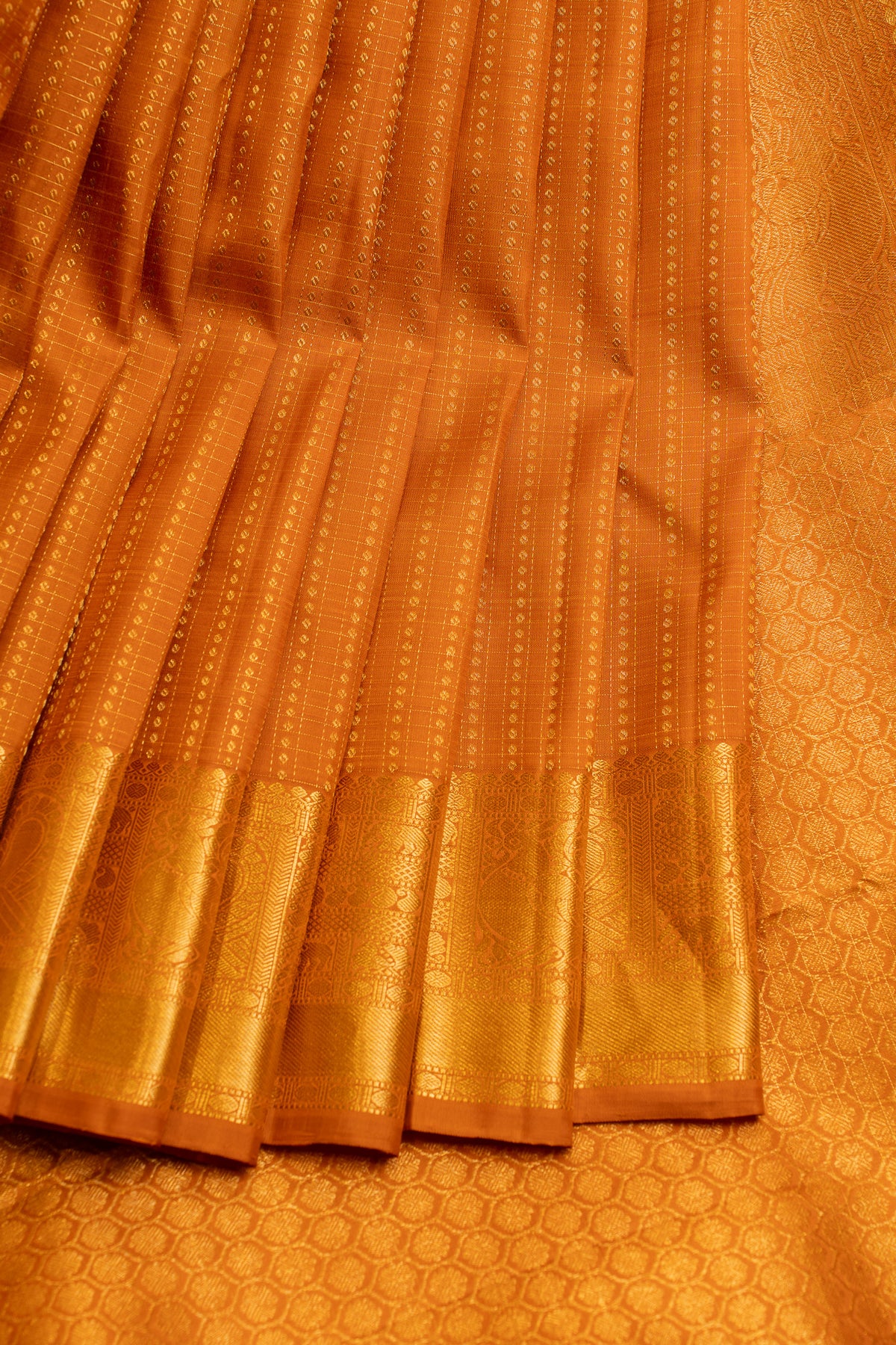 Orange Muthu Zari Kattam pure Kanchipuram silk saree