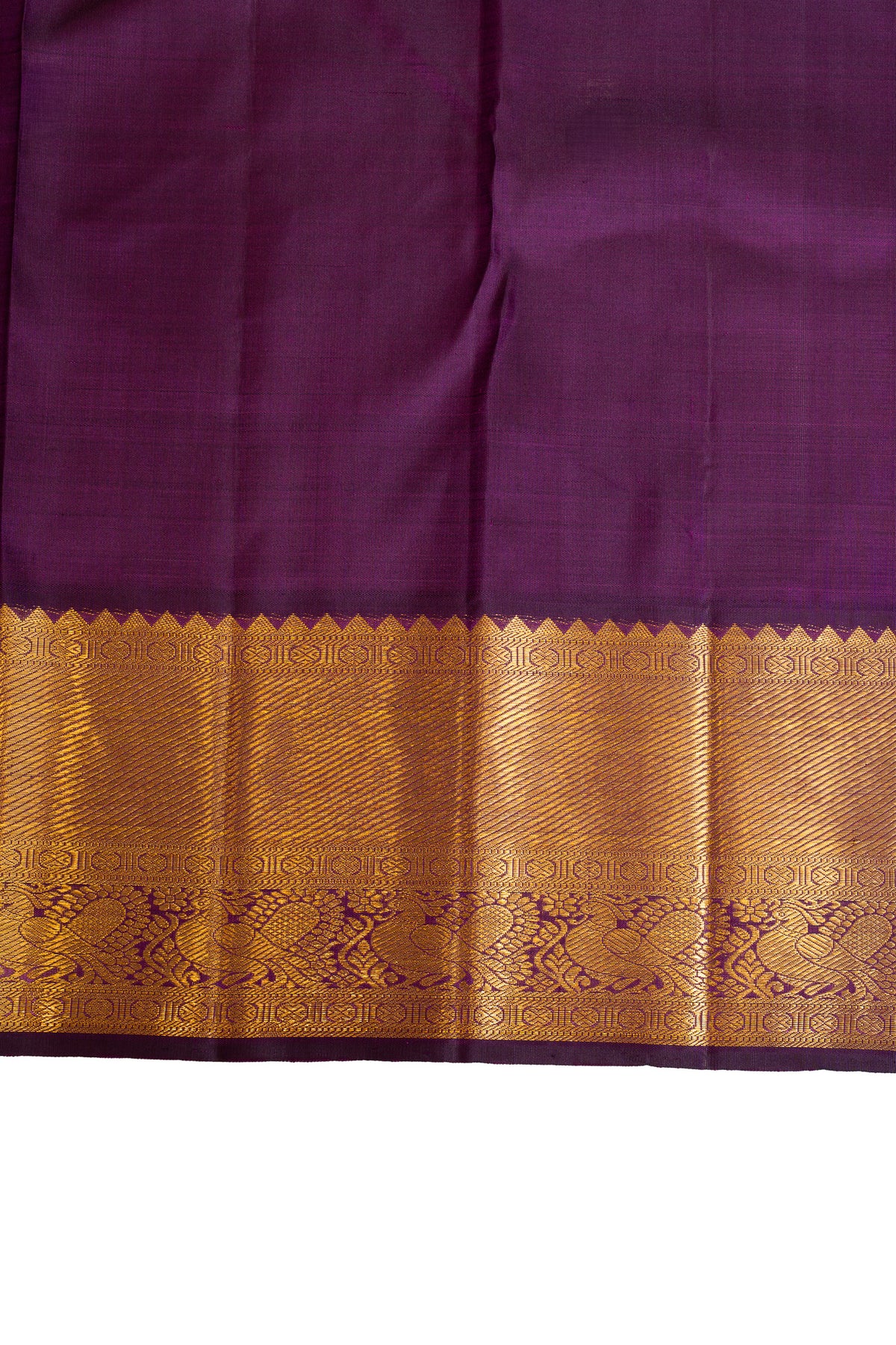 This silverish purple pure Kanchipuram silk saree features exquisite minakari brocade work, blending traditional artistry with a sophisticated color palette. The rich silk fabric offers a lustrous sheen and graceful drape, making it an ideal choice for elegant occasions where timeless style is essential.