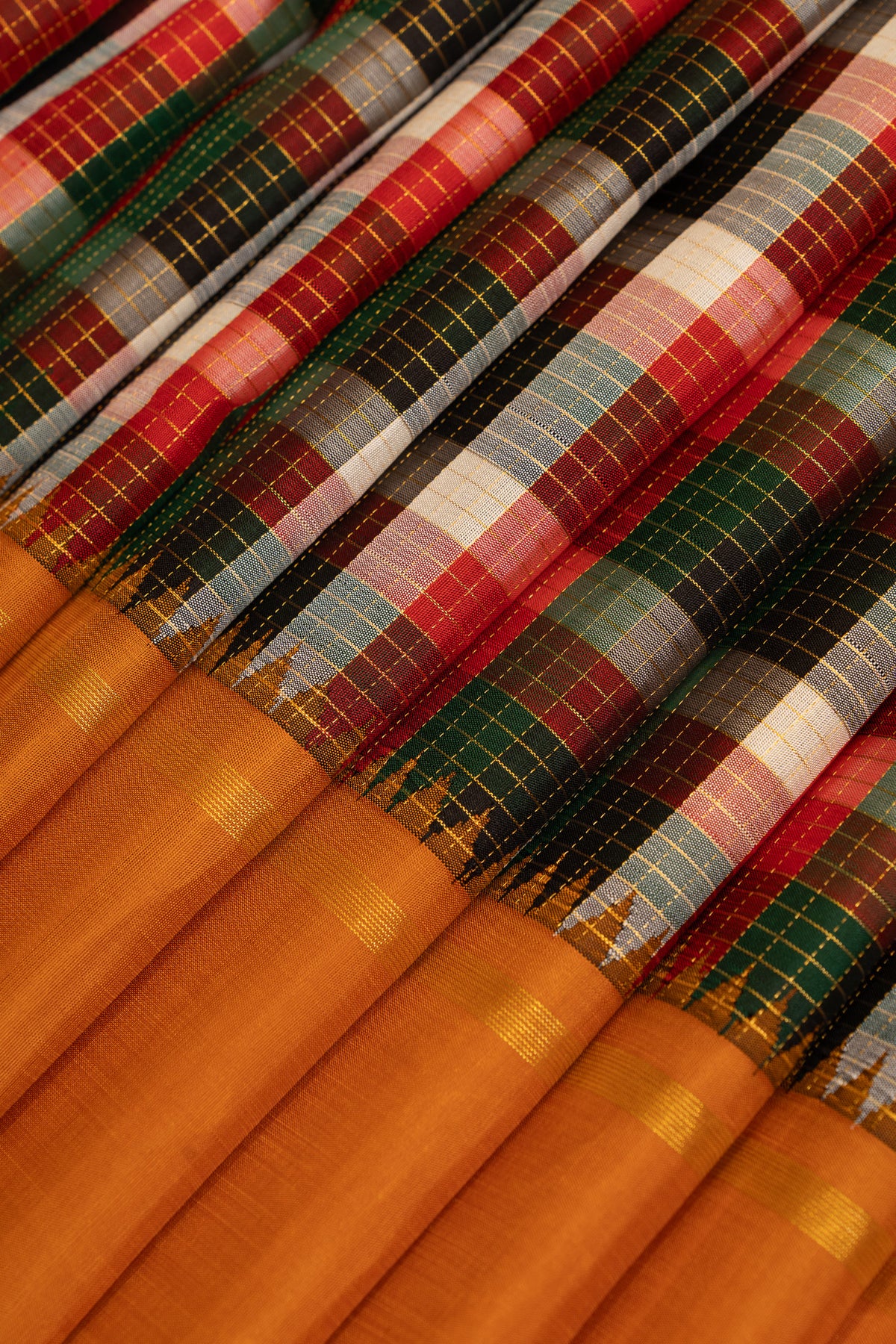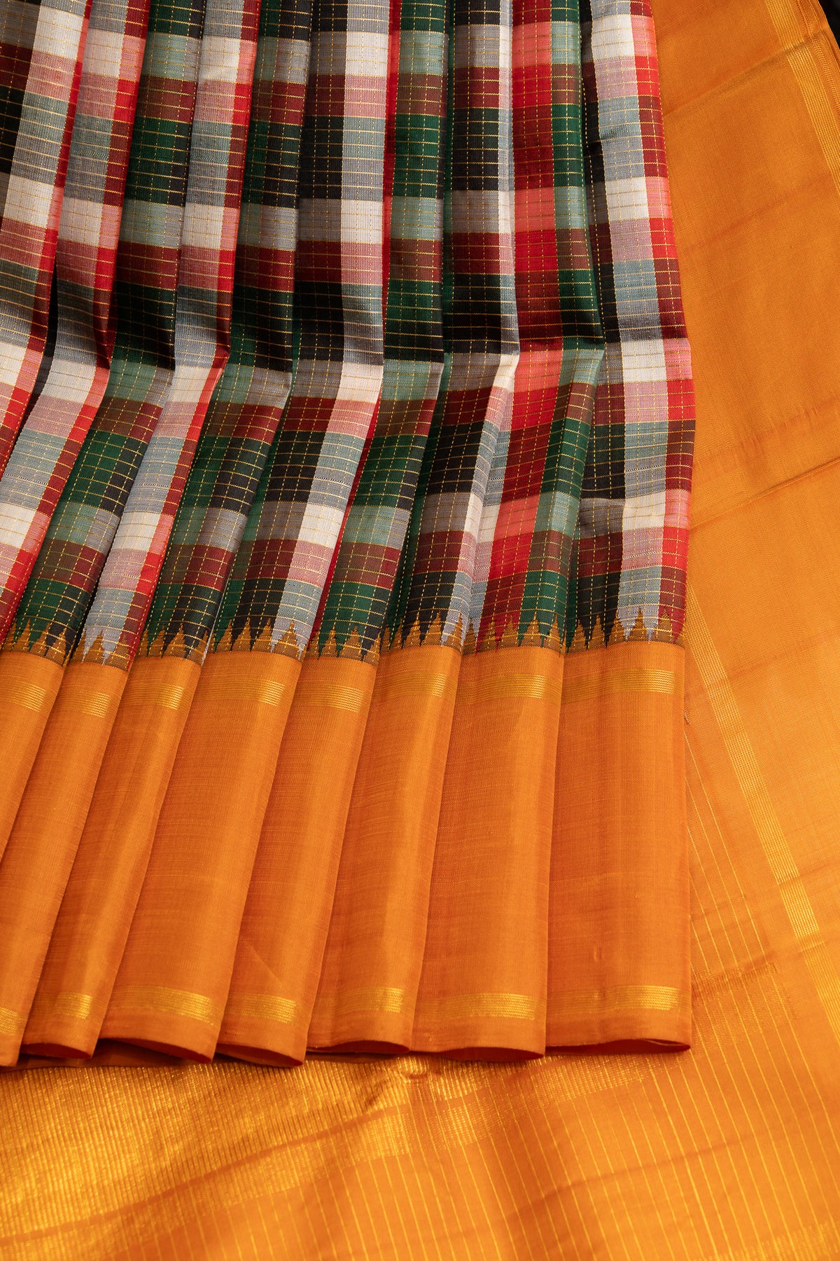 Experience understated elegance with this pure Kanchipuram silk saree, featuring a refined green and white multi-check pattern. Handwoven using time-honored techniques, this saree exemplifies the precision and artistry of South Indian silk traditions. The crisp geometric checks in verdant green and pristine white create a balanced, contemporary aesthetic while maintaining classical appeal. Perfect for those who appreciate versatile sophistication equally suited to festive occasions, professional events, or everyday celebrations that call for elevated style.