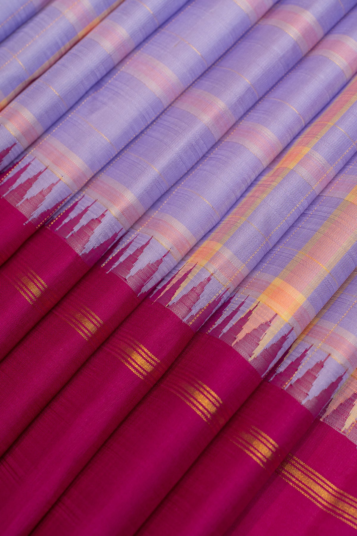 Purple and magenta checks pure Kanchipuram silk saree