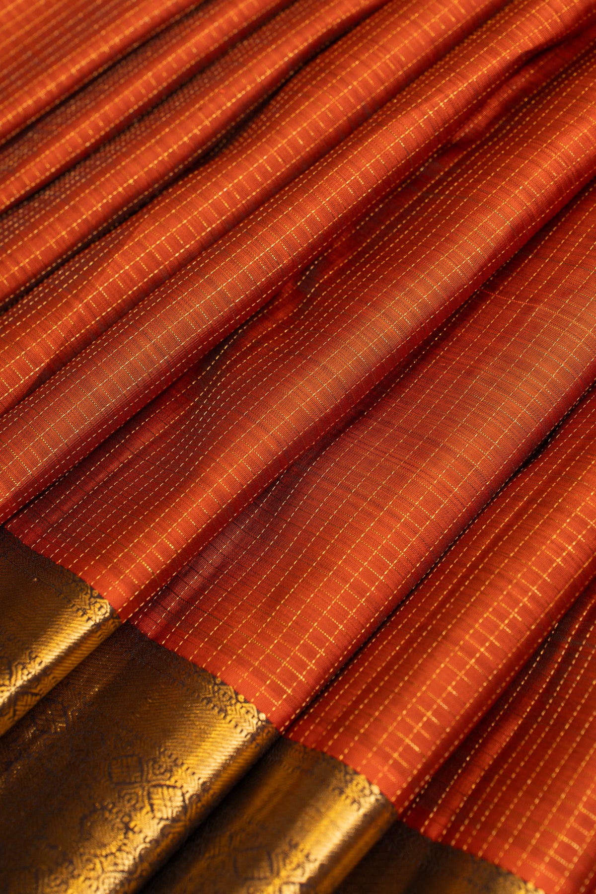 Rust orange Zari checks pure Kanchipuram silk saree