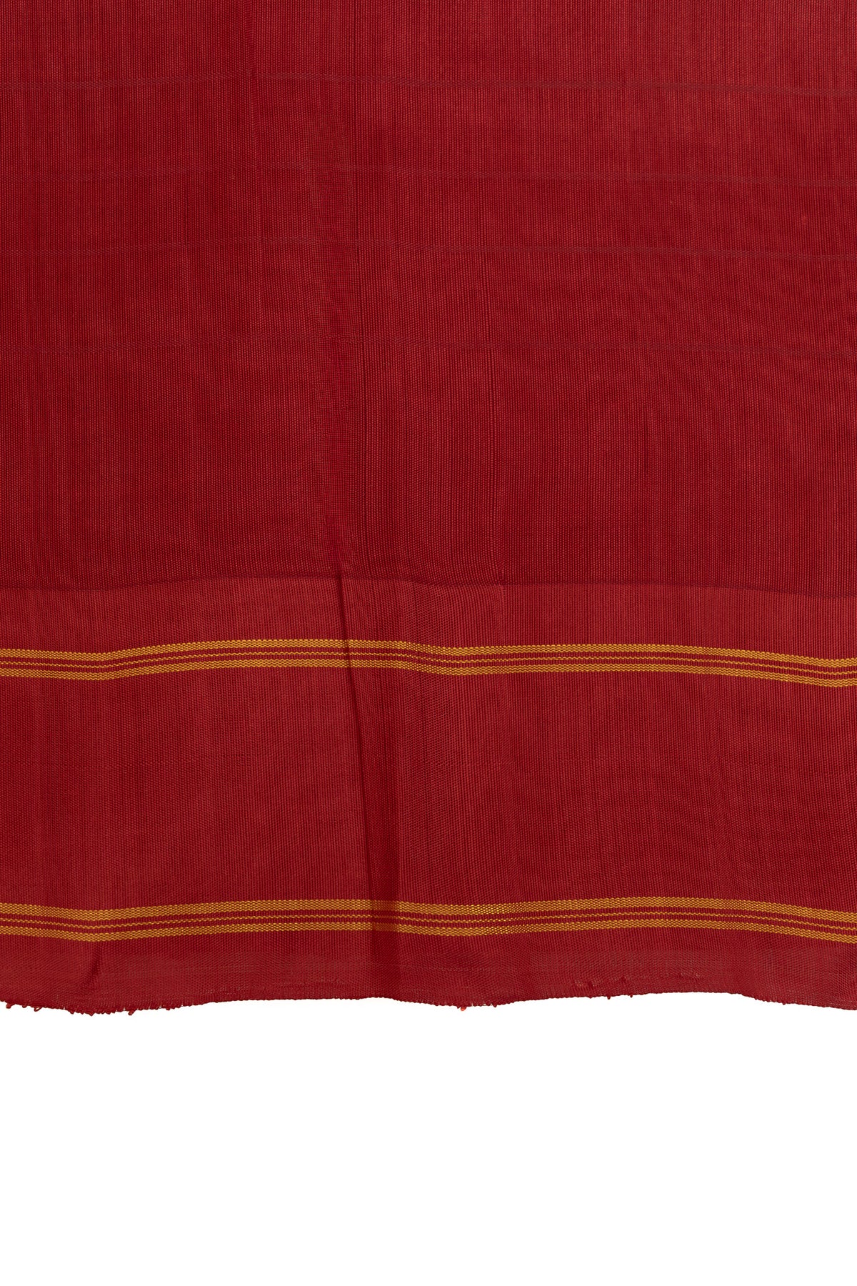 Discover understated elegance with this handwoven saree, where warm mustard tones meet a striking red border in perfect harmony. Crafted from pure cotton blended with silk, this piece offers both breathability and luxurious drape. The thoughtful color palette and artisanal weaving technique make it an ideal choice for discerning wearers who appreciate authentic craftsmanship. Whether worn to cultural celebrations or refined gatherings, this saree embodies timeless sophistication and celebrates the artistry of traditional handloom weaving.