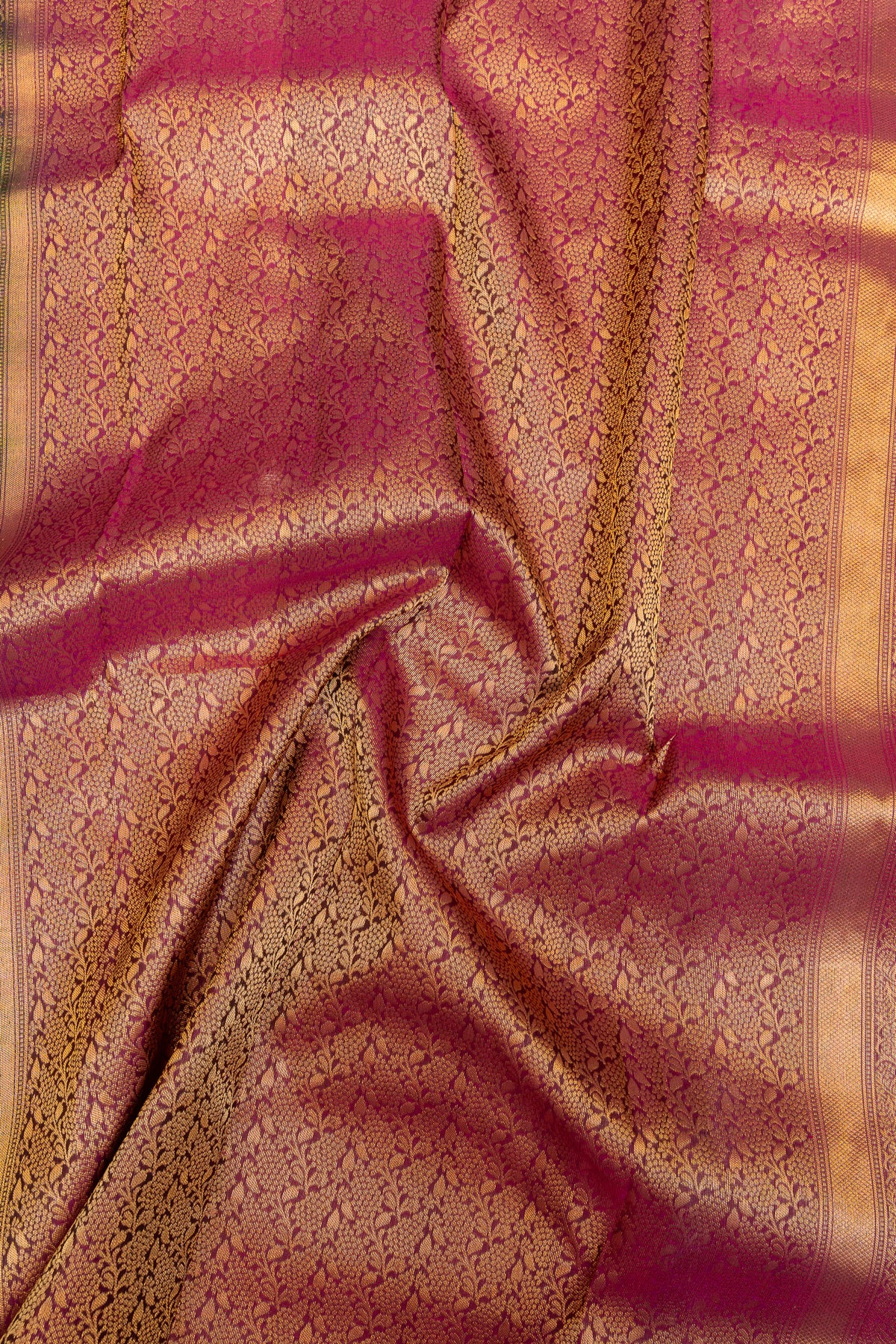 Experience the refined elegance of this bottle green Kanchipuram silk saree, featuring intricate buttis that shimmer with subtle sophistication. Crafted from pure silk using traditional handweaving techniques, this saree embodies the timeless artistry of South Indian textile heritage. The deep, luxurious bottle green shade complements a range of skin tones and occasions, from celebrations to formal gatherings. Each butti detail reflects meticulous craftsmanship, making this an investment piece that transcends seasonal trends. Ideal for the discerning wearer who values authenticity and enduring beauty.