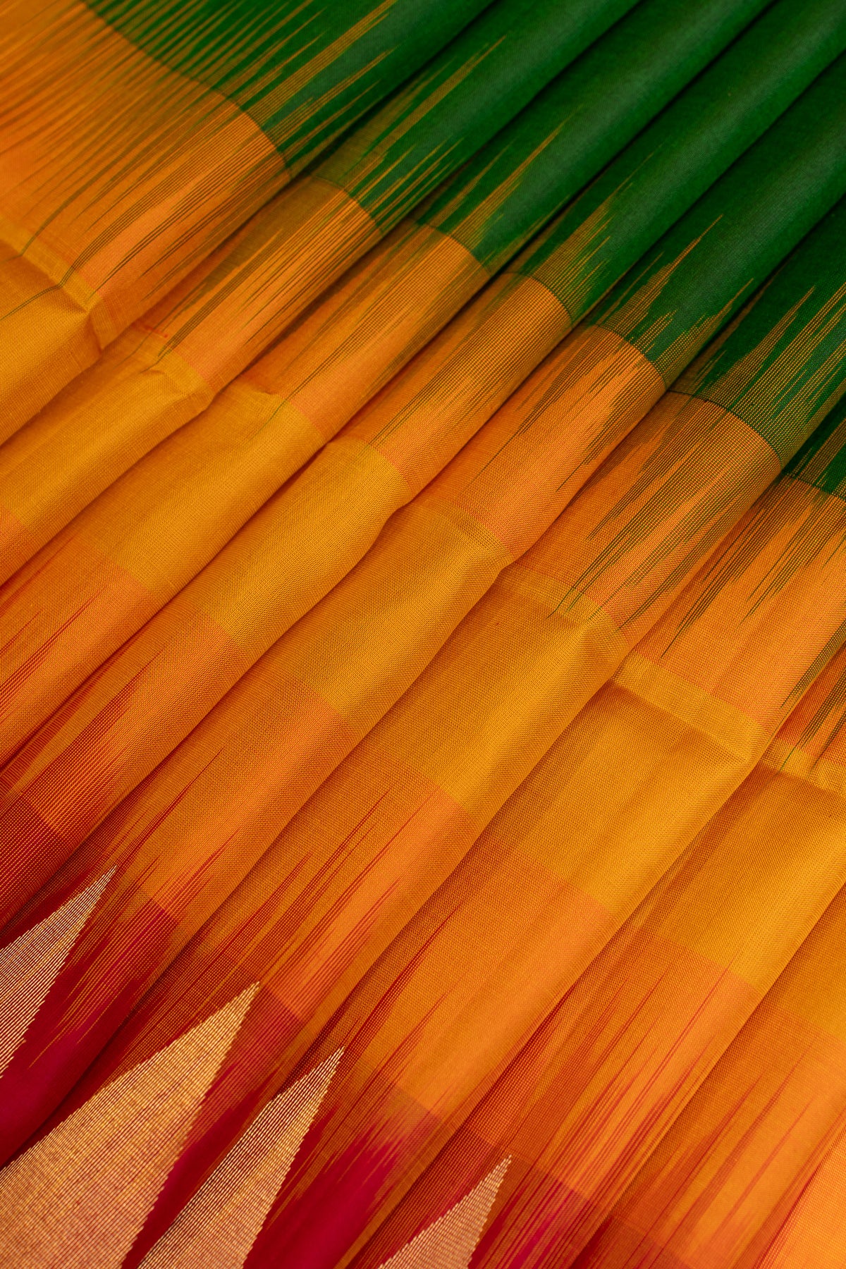Bottle green mustard and magenta Mupagam pure soft silk saree