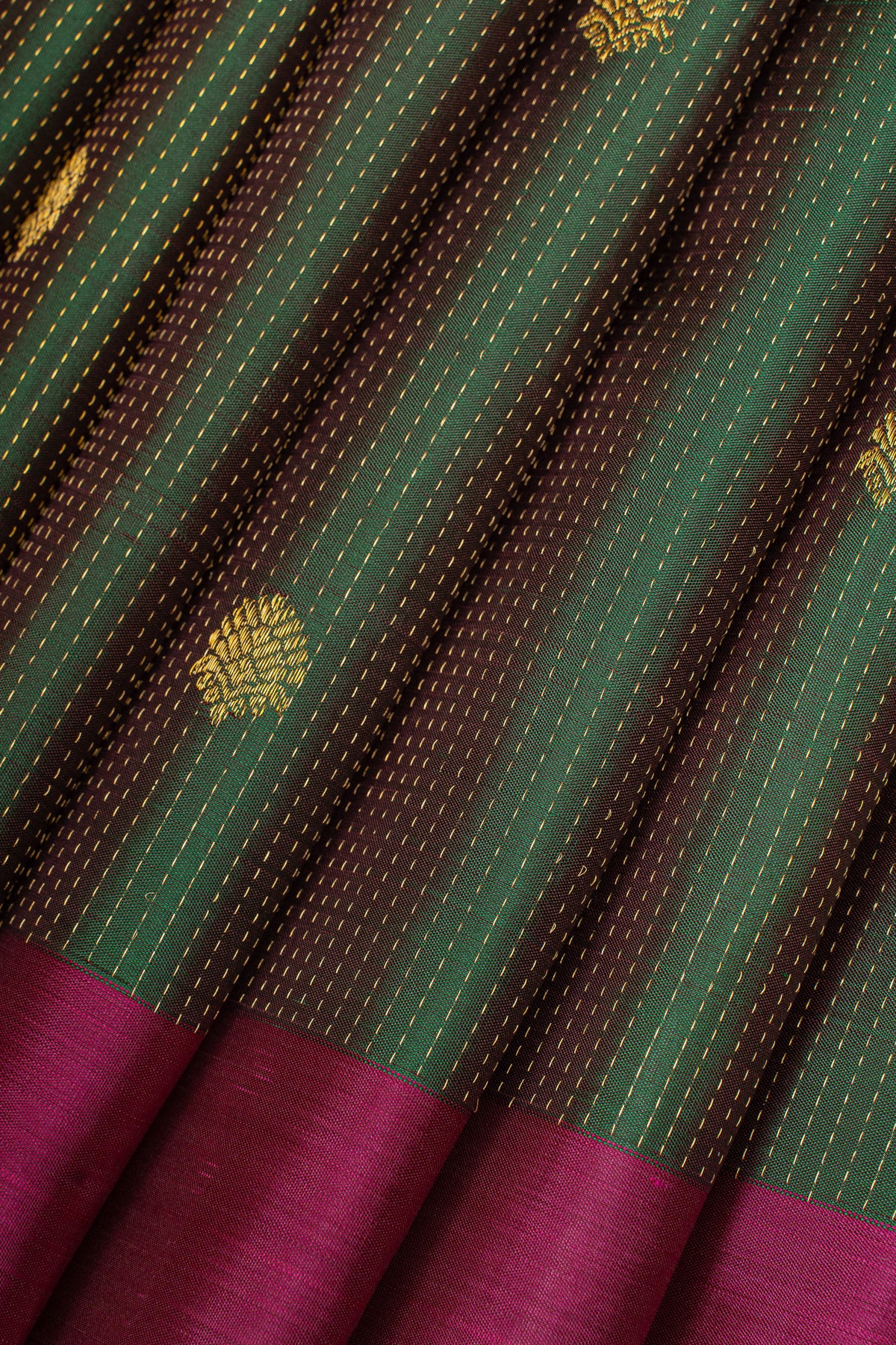 Mehandi green and red stripes pure kanchipuram silk saree