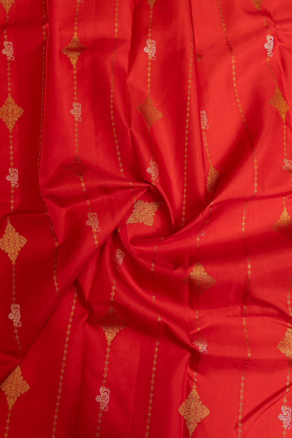 Experience understated elegance with this red and green borderless ikat Kanchipuram pure silk saree. Expertly woven from premium Kanchipuram silk, its vibrant ikat patterns blend seamlessly without a traditional border, offering a modern yet classic appeal. The rich hues and smooth texture highlight exceptional craftsmanship, making this saree a refined choice for those who appreciate subtle sophistication and timeless style.
