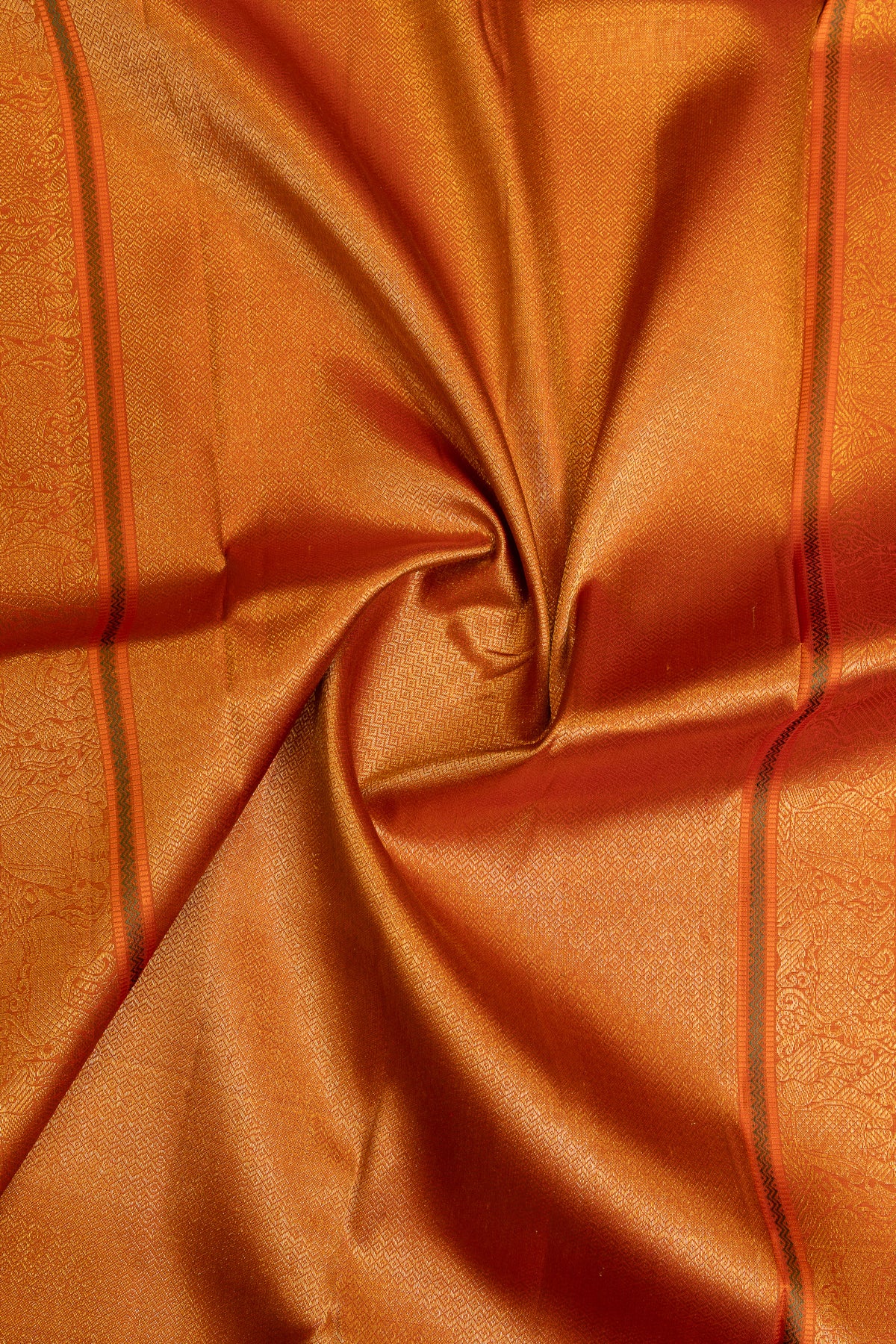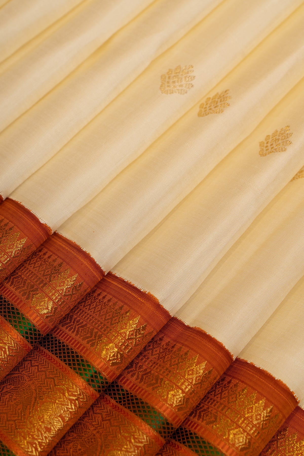 Ivory and rust orange traditional pure Kanchipuram silk saree