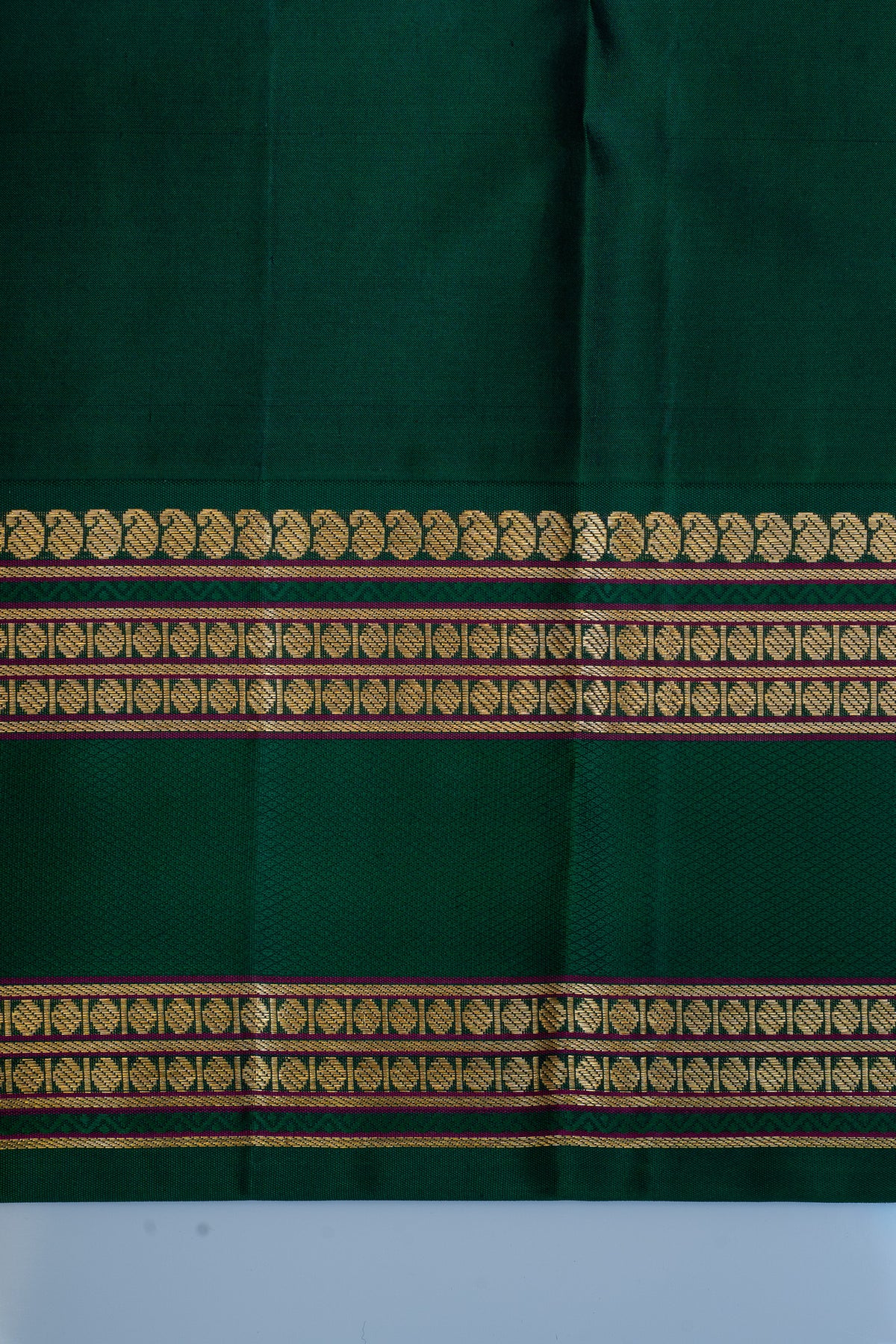 Draped in timeless elegance, this magenta Kanchipuram silk saree embodies centuries of weaving heritage. Crafted from pure silk with intricate traditional patterns, the rich magenta hue radiates sophistication and grace. The saree's lustrous finish and fluid drape make it an ideal choice for weddings, festivals, and formal occasions. Each piece reflects the meticulous craftsmanship of master weavers, ensuring a garment that transcends trends. Perfect for those who appreciate authentic Indian textiles and refined style.