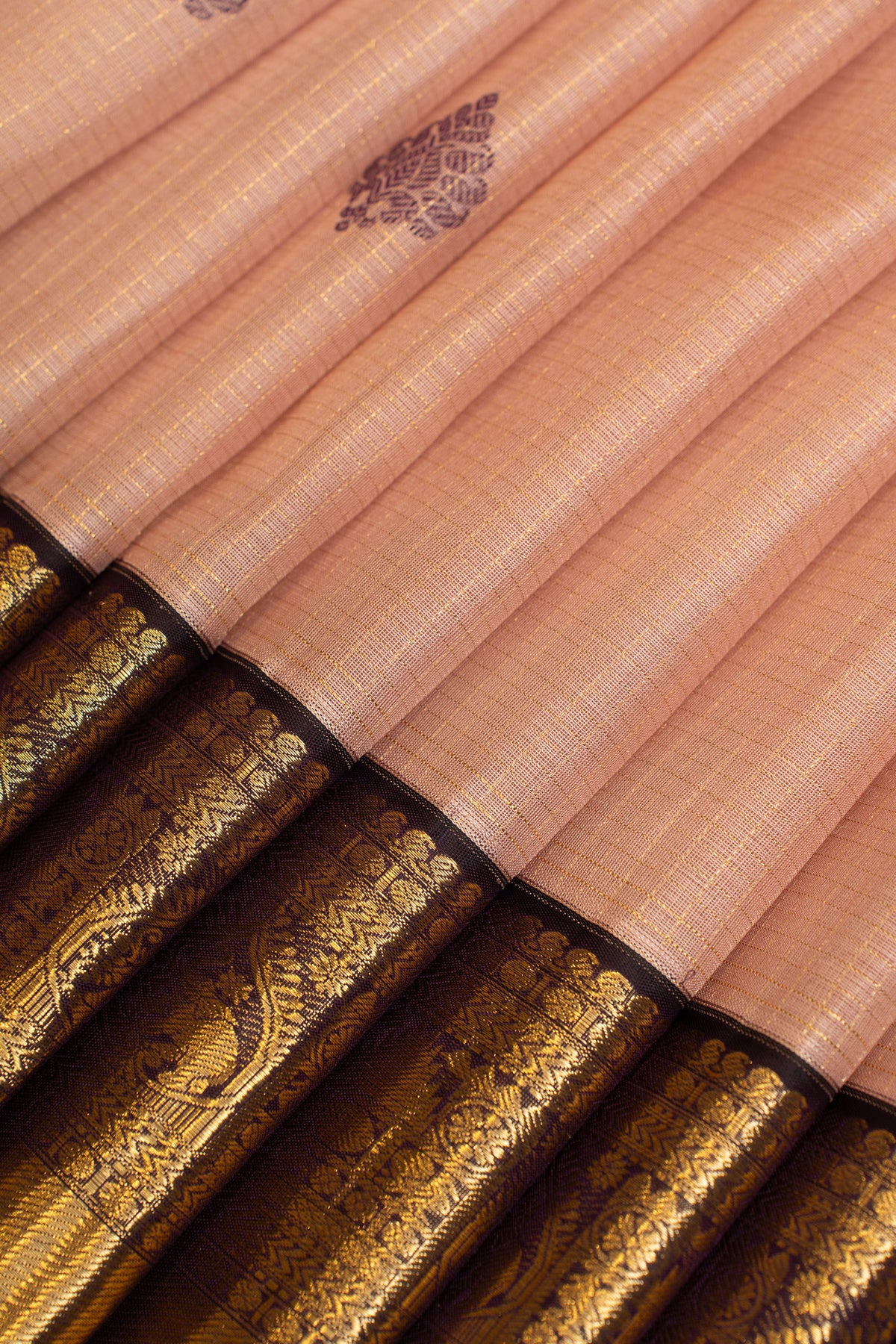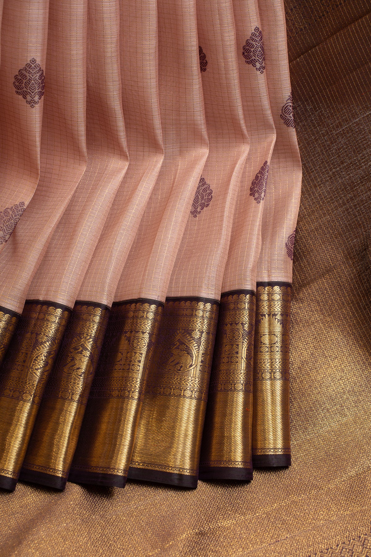 Onion pink zari checks pure Kora Kanchipuram silk saree