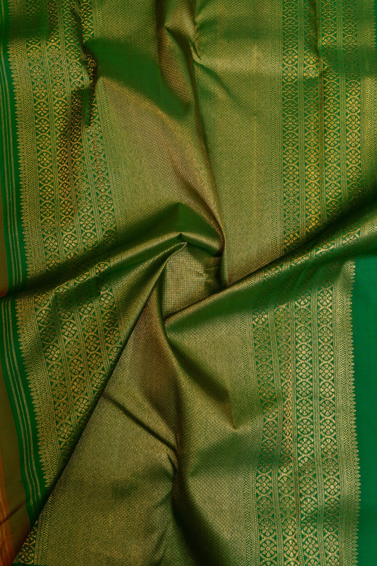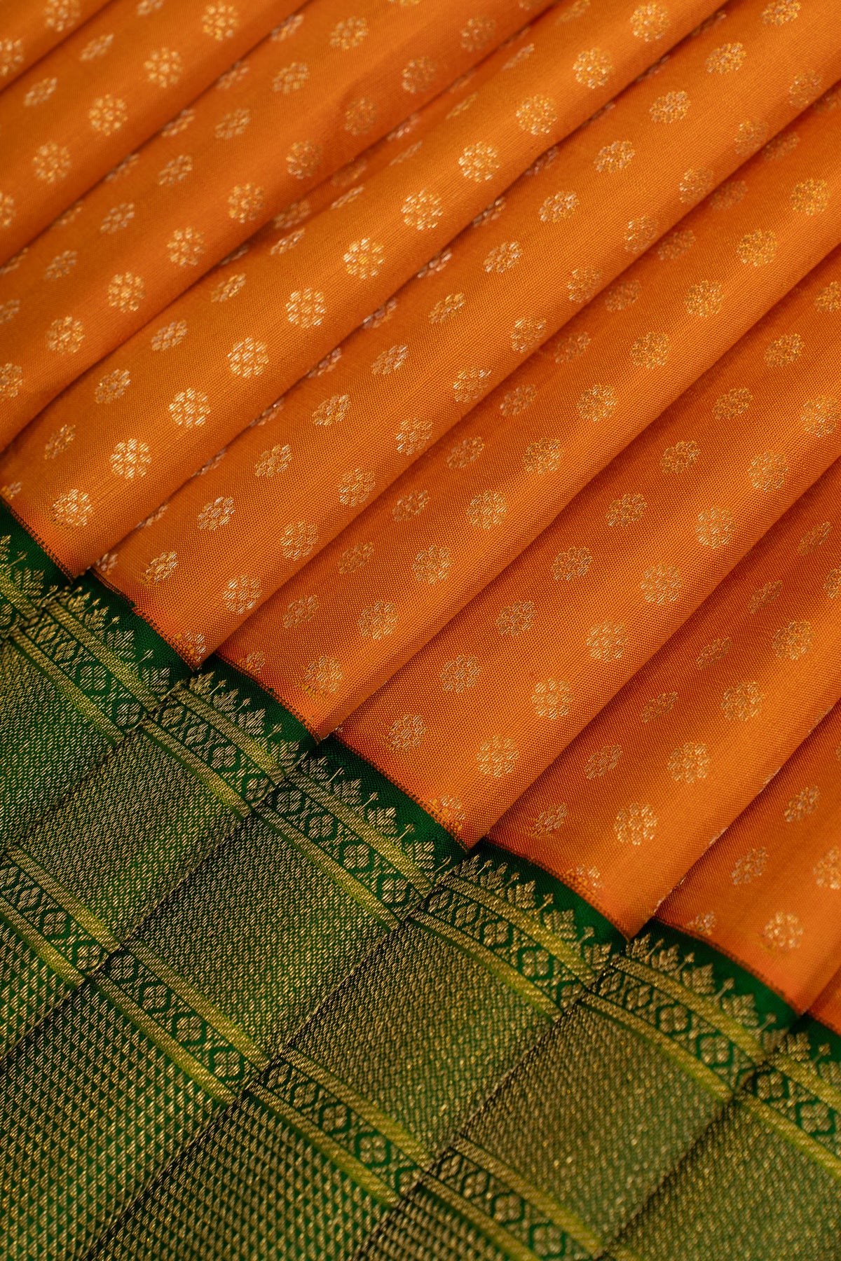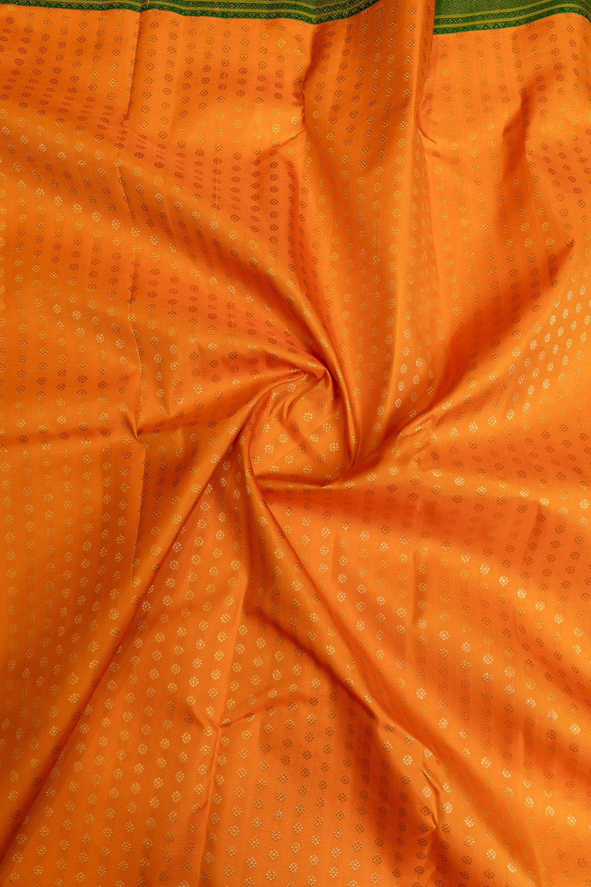 Orange and green lakshadeepam turning border pure Kanchipuram silk saree