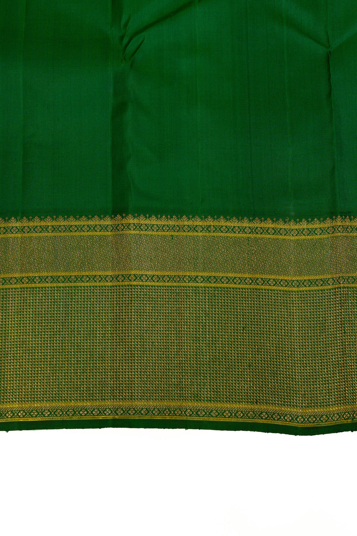 This orange and green lakshadeepam turning border pure Kanchipuram silk saree harmoniously blends vibrant colors with exquisite craftsmanship. The distinctive lakshadeepam border adds a unique touch of traditional elegance, while the rich silk fabric offers a smooth, graceful drape. Perfect for special occasions, this saree embodies refined sophistication and timeless beauty.