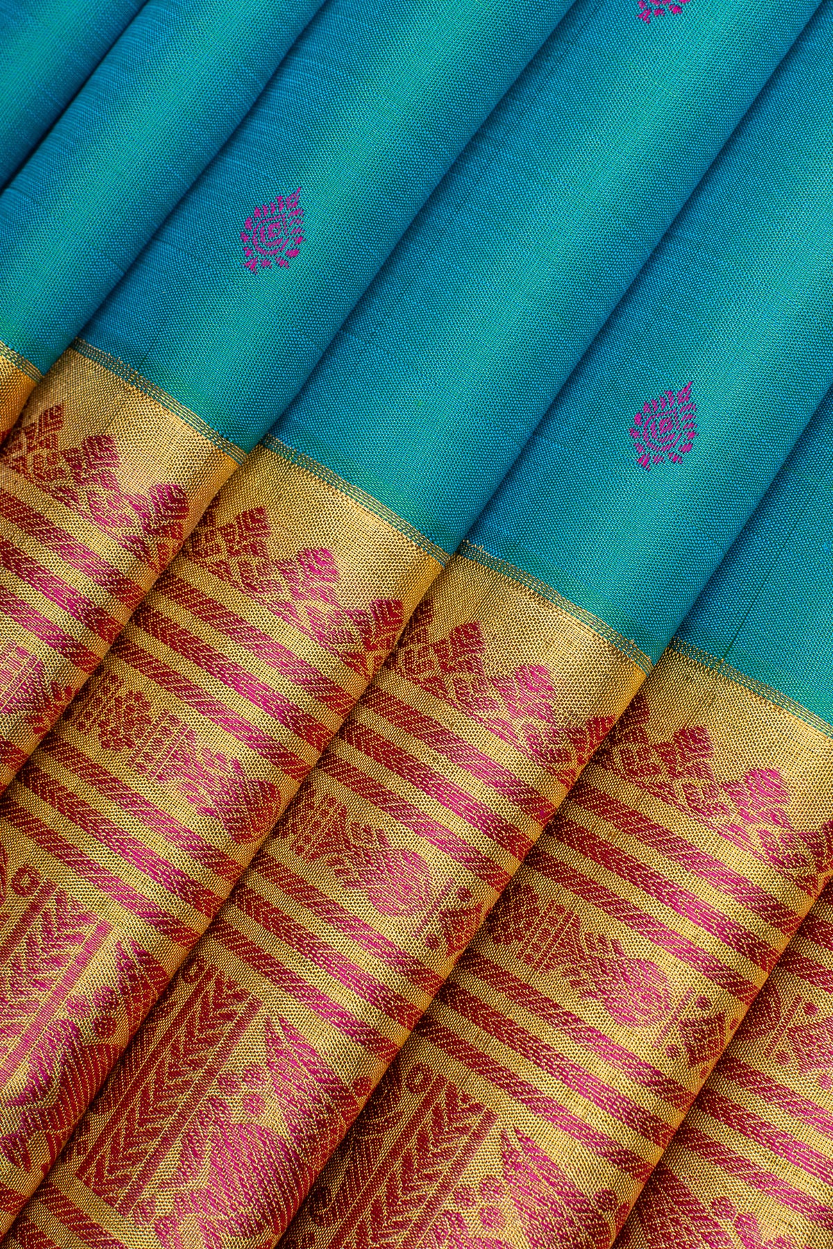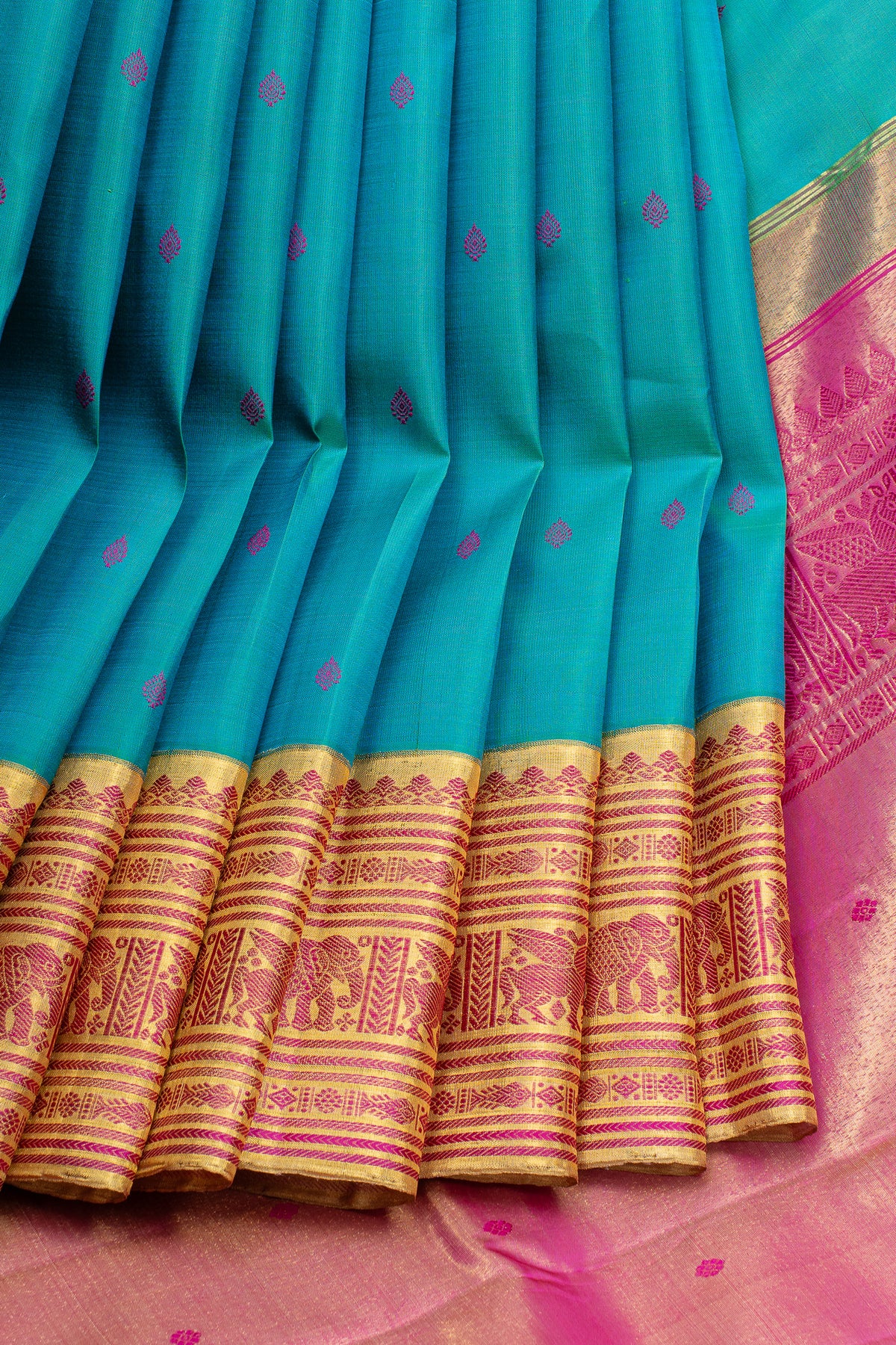 Peacock blue traditional pure kanchipuram silk saree