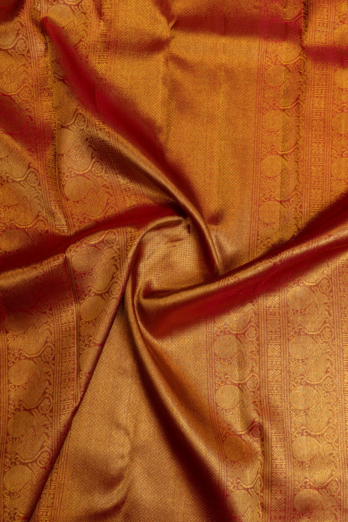 Red and gold vintage tissue pure Kanchipuram silk saree