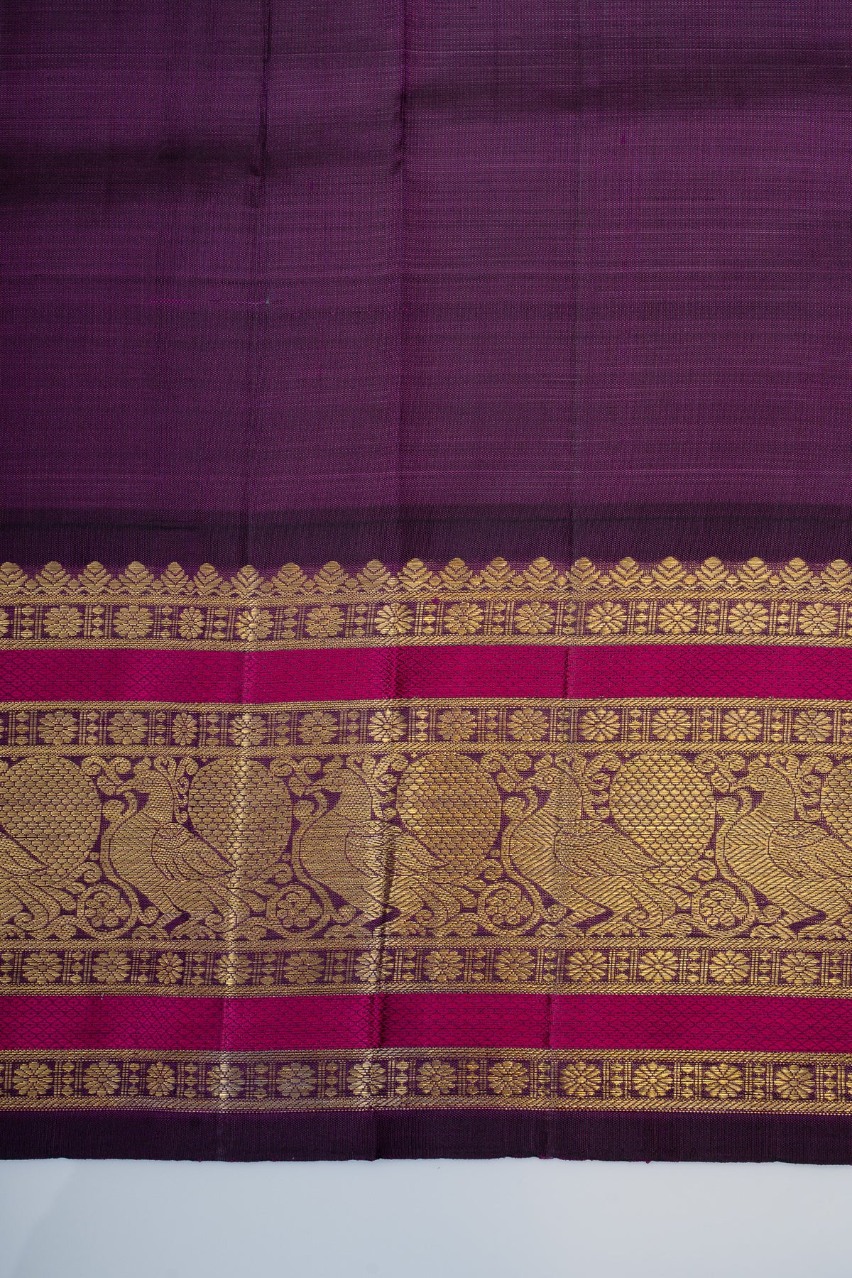 Elevate your ethnic wardrobe with this striking kanchipuram silk saree, featuring bold red and purple stripes that command attention. Crafted from pure silk, this traditional weave showcases the lustrous finish and intricate craftsmanship Kanchipuram is renowned for. The vibrant color combination offers versatility for both festive occasions and formal gatherings. Drape it with confidence and experience the luxurious comfort of authentic South Indian silk that transcends generations.