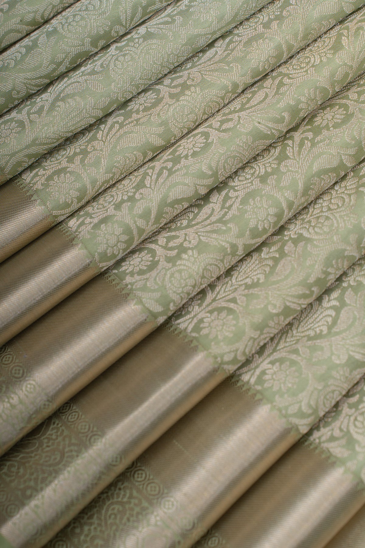 Mint green floral brocade pure Kanchipuram silk saree