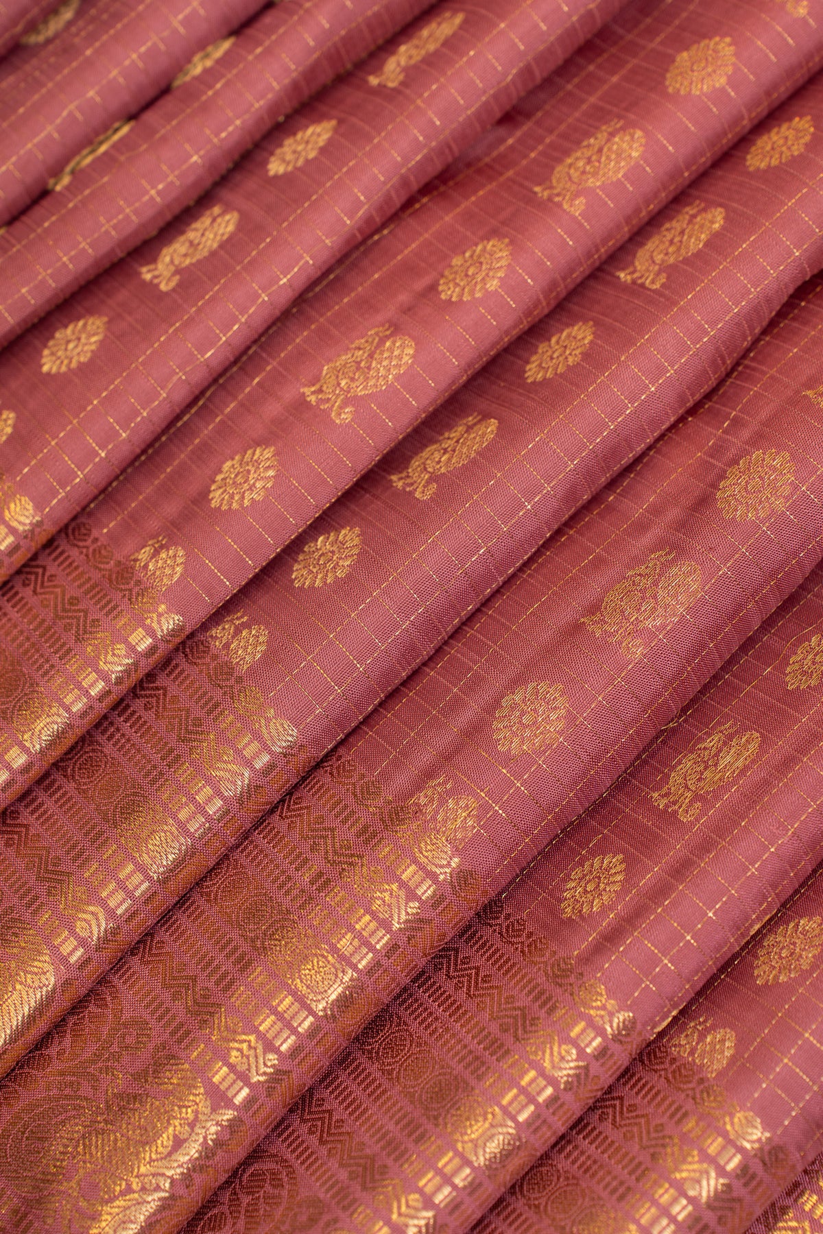 Lotus pink zari panel pure Kanchipuram silk saree
