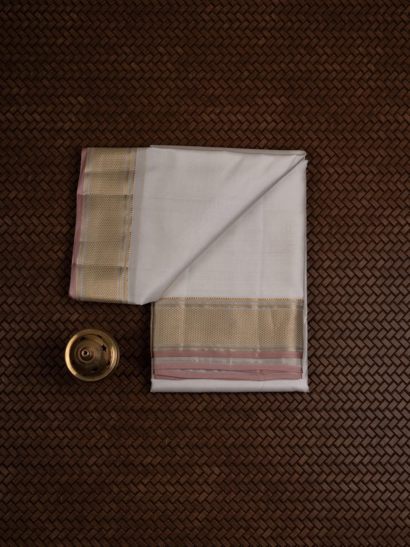 Off white and gold pink selvedge pure silk dhoti