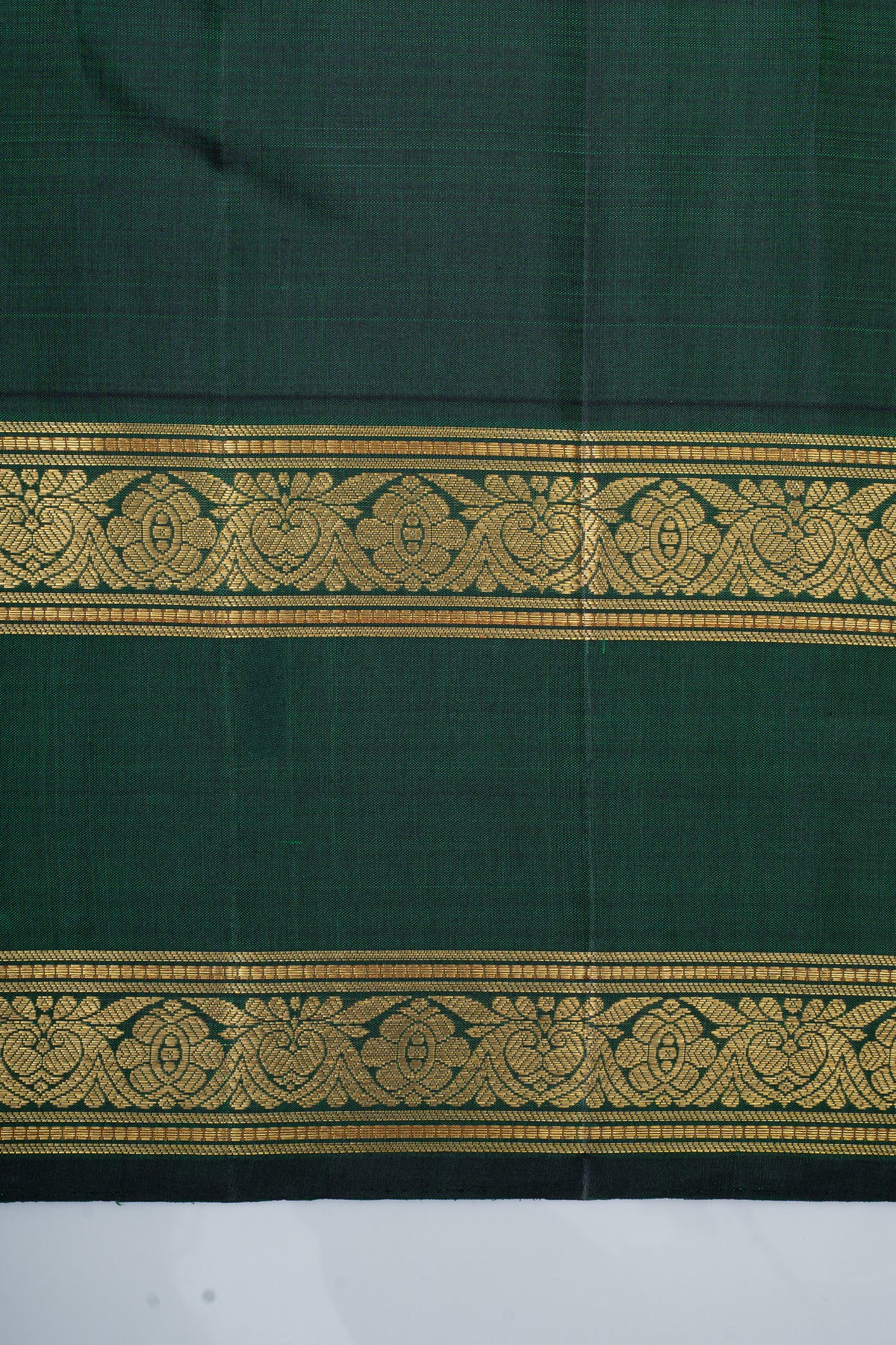 Celebrate timeless heritage with this golden yellow and green Iruthalaipakshi vintage checks pure Kanchipuram silk saree. The radiant golden yellow base is beautifully paired with rich green tones, while the iconic Iruthalaipakshi (double-headed bird) motifs woven within vintage checks add a regal and symbolic touch.Woven from luxurious pure Kanchipuram silk, this saree features a smooth texture, lustrous sheen, and a graceful drape. The intricate craftsmanship reflects the mastery of traditional South Indian weavers, making it perfect for weddings, festive occasions, and grand celebrations.