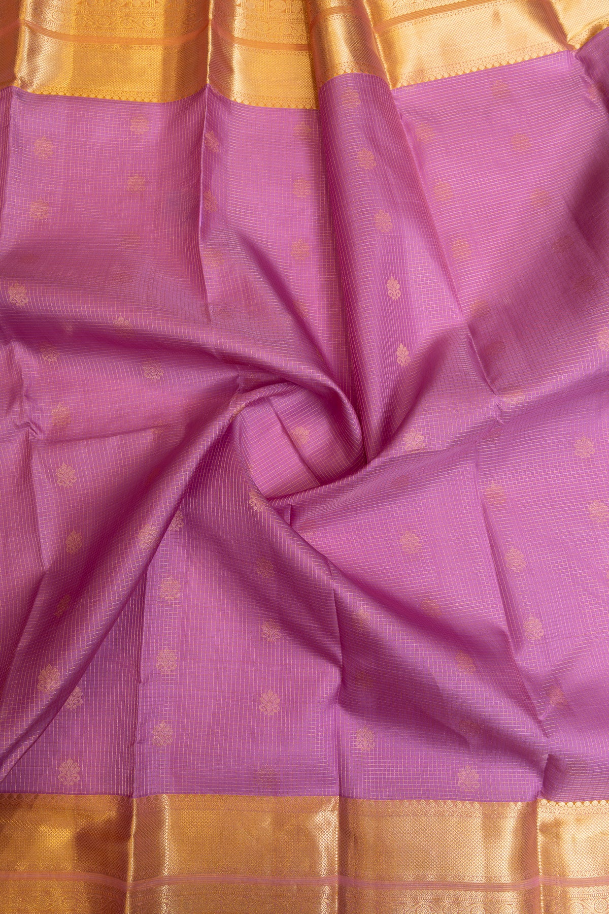 Discover timeless elegance with this stunning Kanchipuram silk saree, featuring a captivating blend of lilac and yellow tones. Woven from pure Kanchipuram silk, this saree showcases the finest traditions of South Indian textile artistry with its lustrous finish and impeccable drape. The harmonious color palette brings a refined sophistication to your ensemble, making it an ideal choice for weddings, celebrations, and formal gatherings. Each thread reflects generations of weaving expertise, offering you a garment that transcends trends. Embrace the luxury and prestige of authentic silk heritage with this exquisite piece.