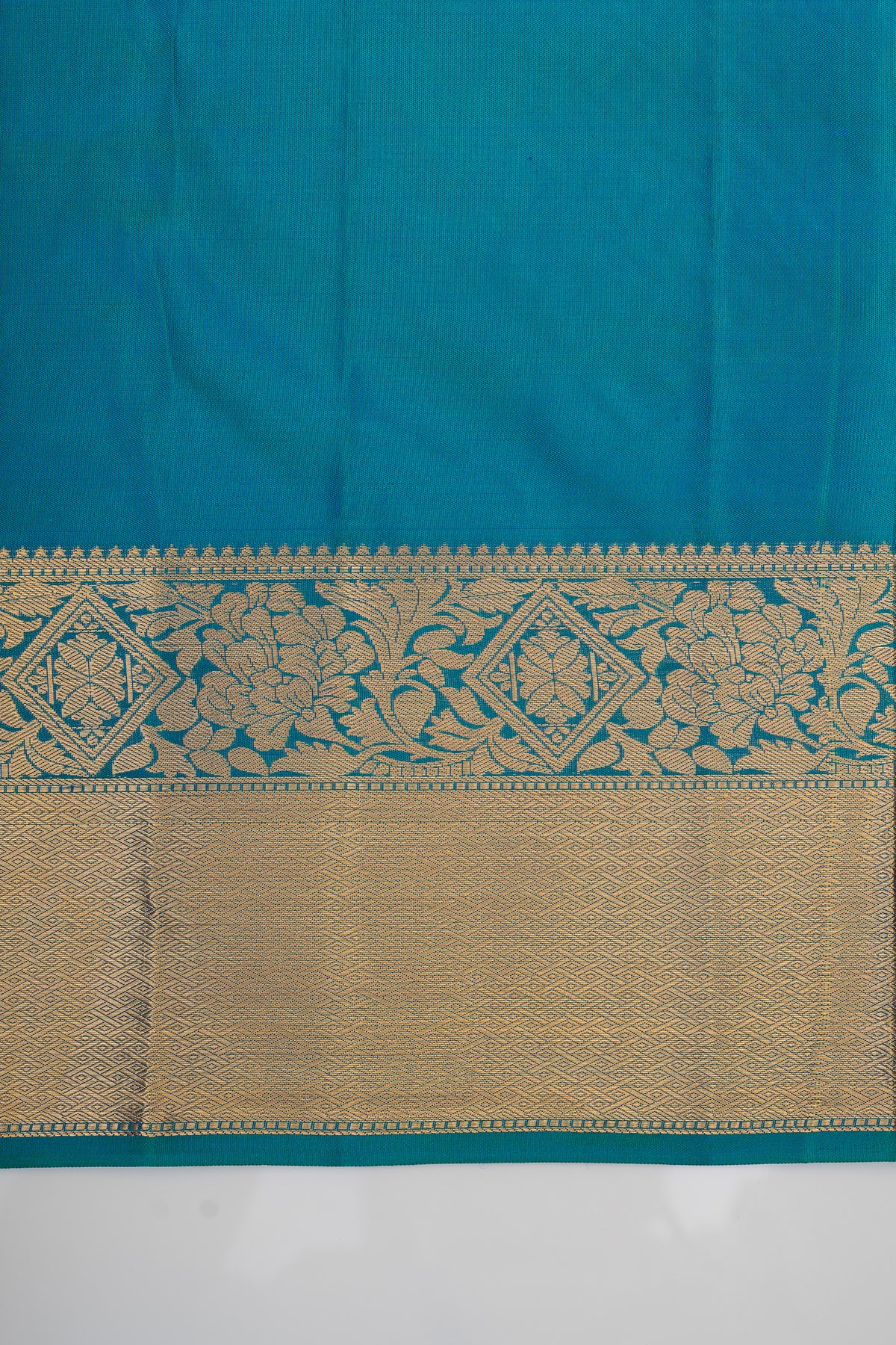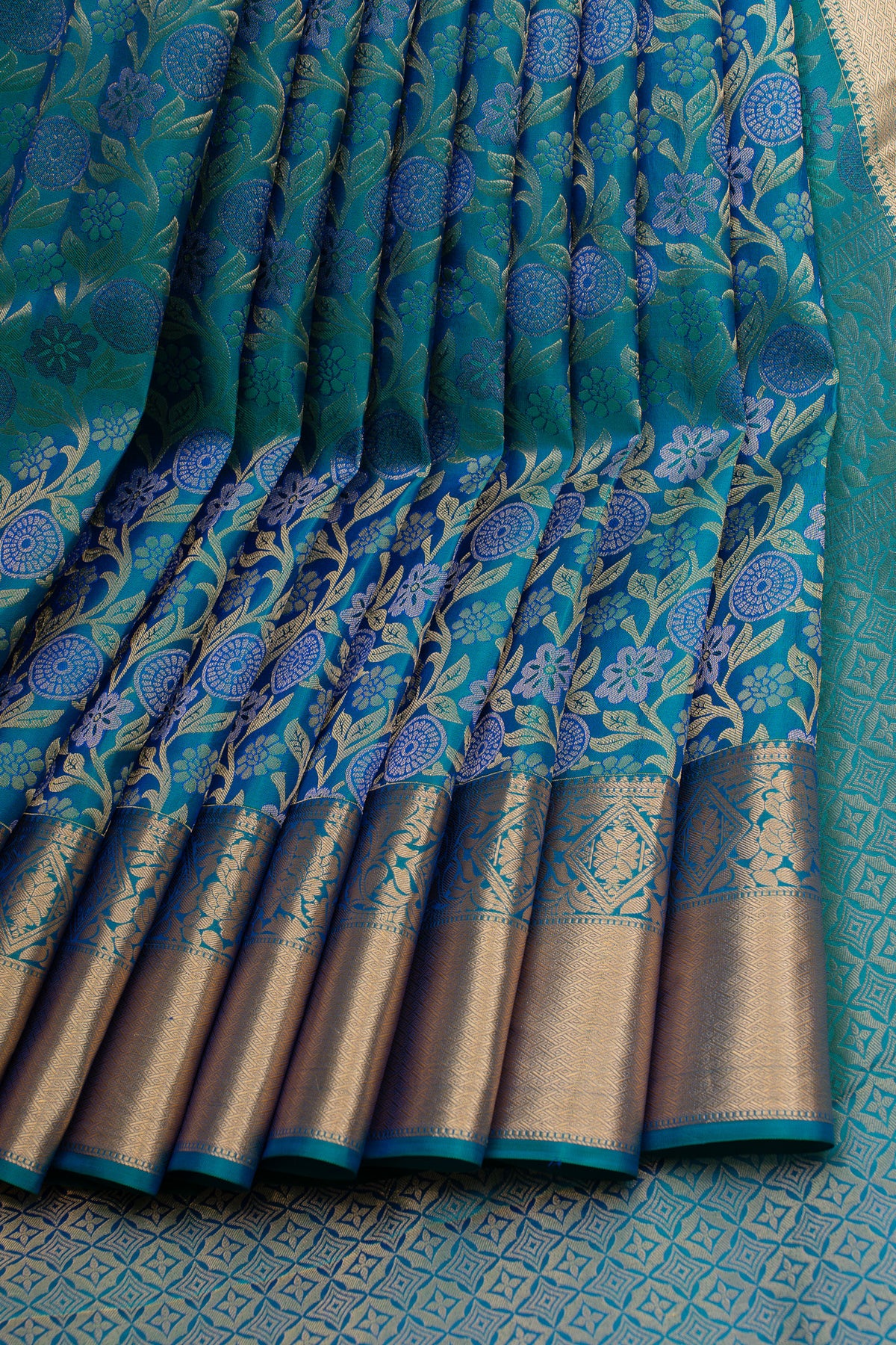 Peacock blue floral brocade pure Kanchipuram silk saree