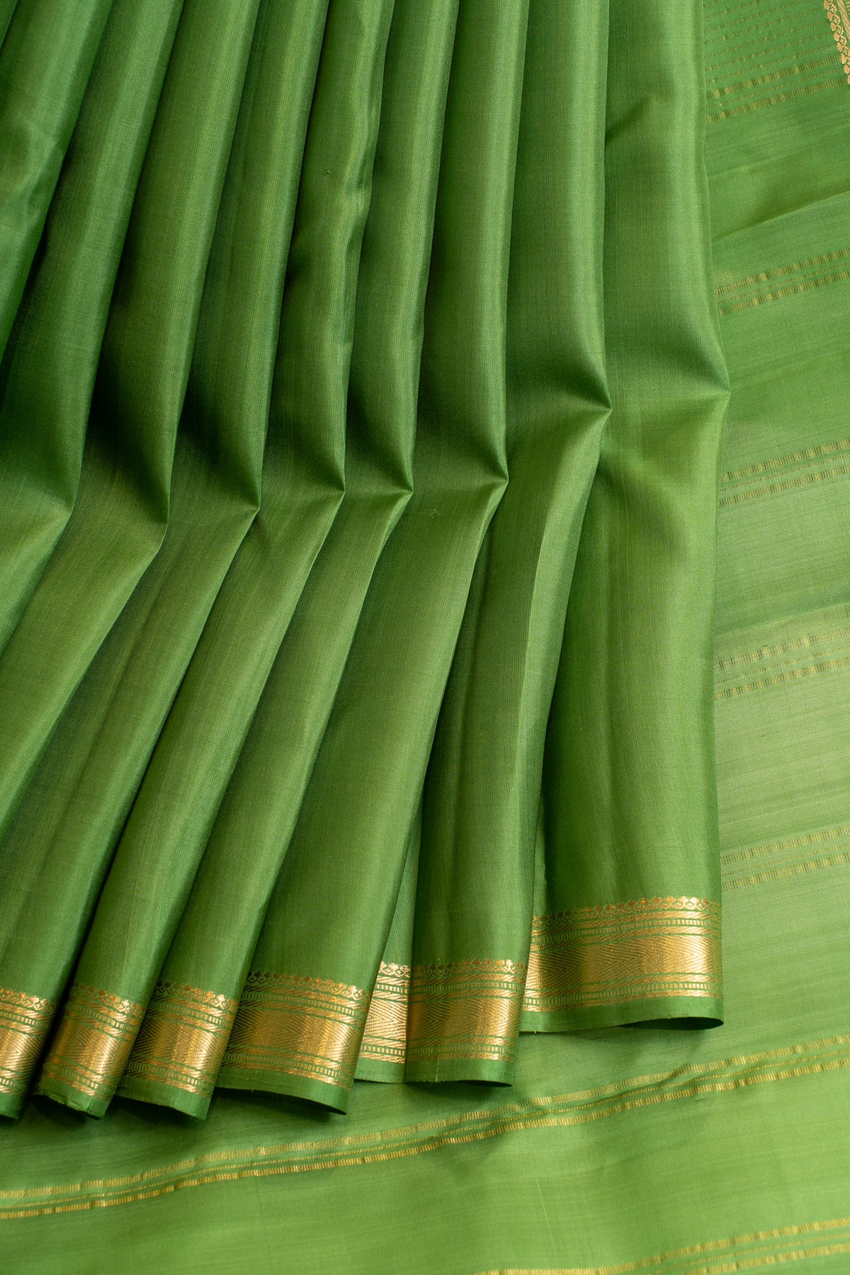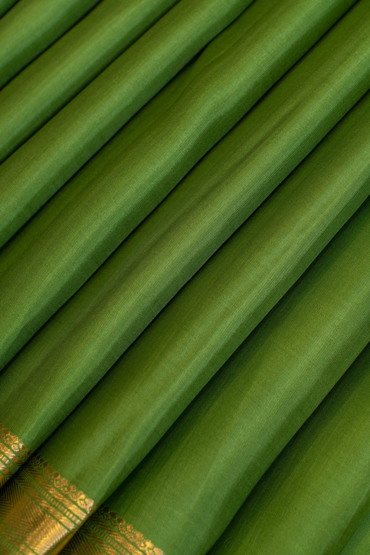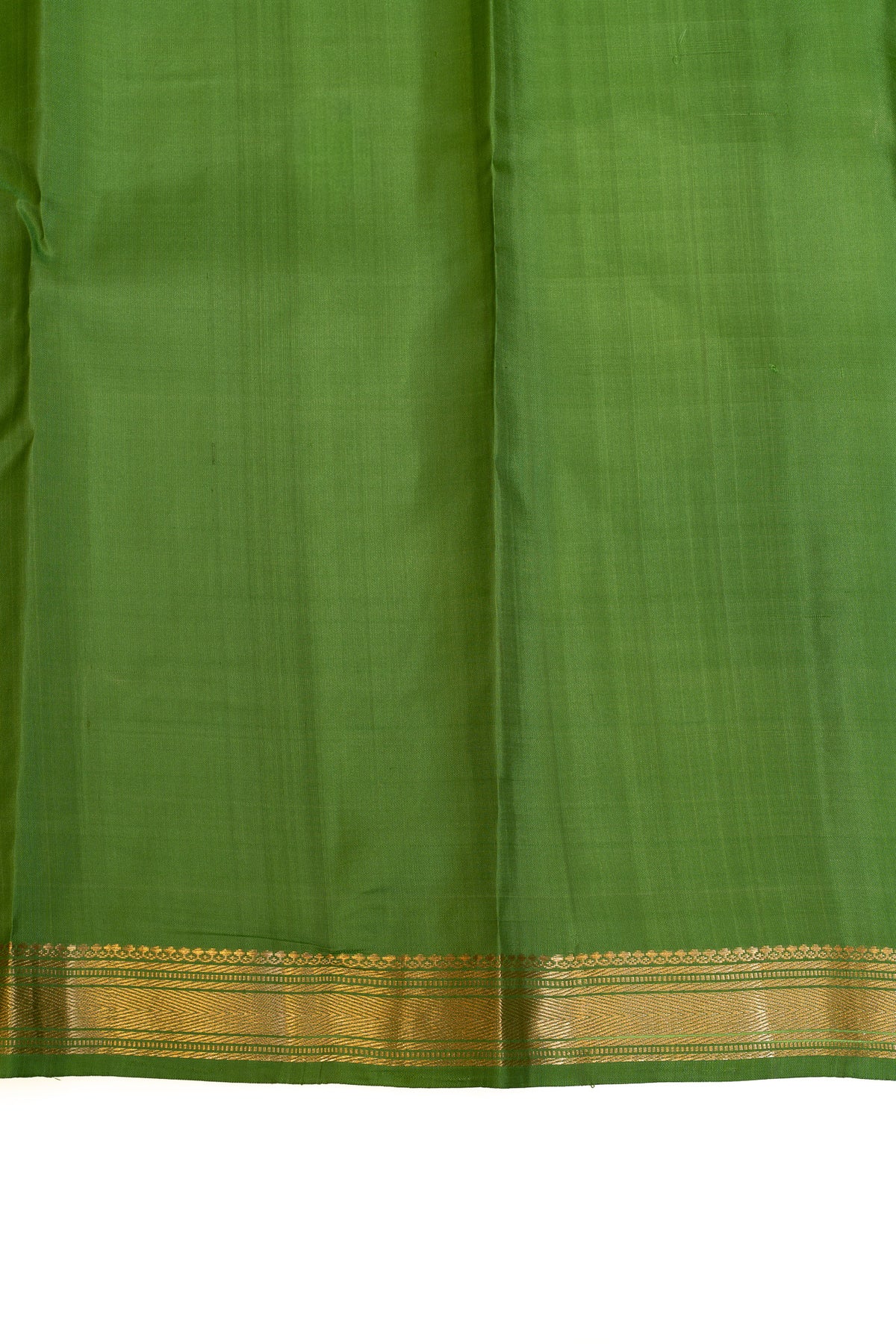 This Pine Green Pure Kanchipuram Silk Saree features a delicate small border that enhances its rich silk texture. The deep pine green hue exudes refined sophistication, making it an ideal choice for elegant occasions where understated luxury and timeless craftsmanship are celebrated.