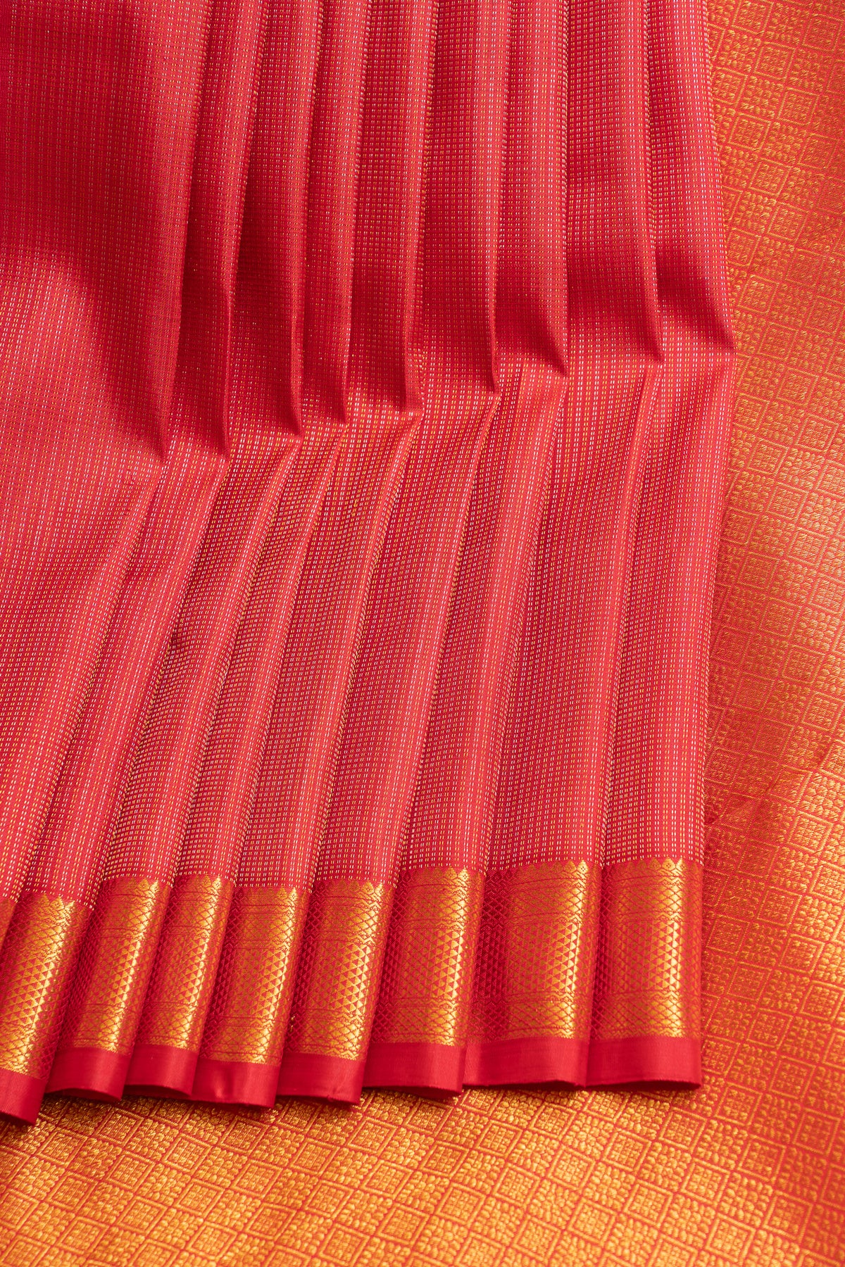 Radiate timeless elegance with this pink Muthu Zari Kanchipuram silk saree, a refined creation that seamlessly blends delicate femininity with ornamental sophistication. The soft pink palette provides a graceful foundation, while the Muthu Zari embellishment—featuring lustrous pearl-like metallic threadwork—introduces subtle radiance and textural richness. Woven from pure Kanchipuram silk, this saree delivers the exceptional body, natural sheen, and structural integrity that distinguish these textiles as treasured heirlooms. The intricate Muthu Zari detailing showcases masterful artisanal craftsmanship, creating an interplay of light that enhances the saree's understated glamour. Ideal for weddings, festive celebrations, and occasions demanding refined grace, this piece represents the pinnacle of South Indian textile heritage—a distinguished investment that honors tradition while exuding contemporary sophistication.