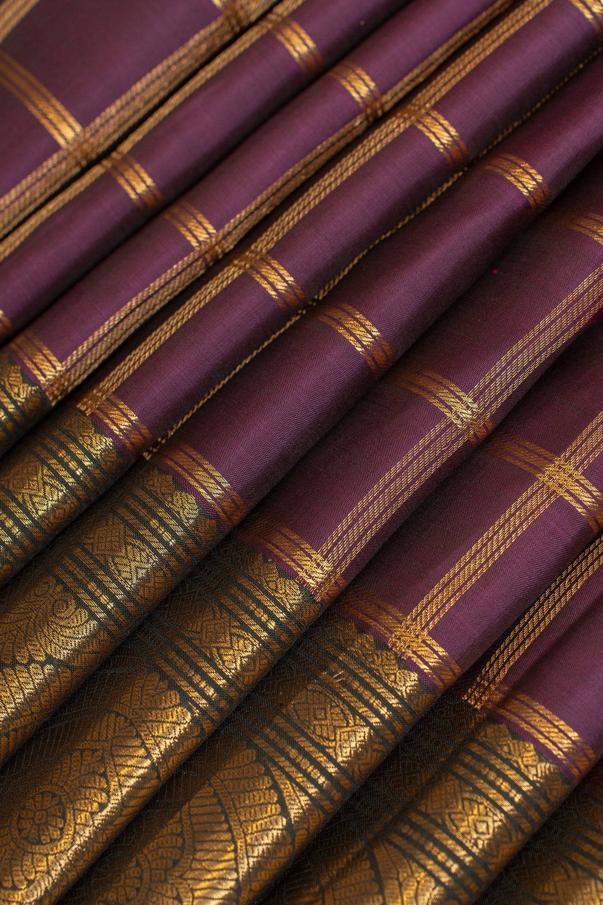 Experience timeless elegance with this purple zari checks traditional pure Kanchipuram silk saree. Crafted from rich, high-quality silk, it features intricate zari check patterns that highlight classic craftsmanship. Perfect for special occasions, this saree offers a refined drape and a luxurious sheen, embodying heritage and sophistication in every fold.