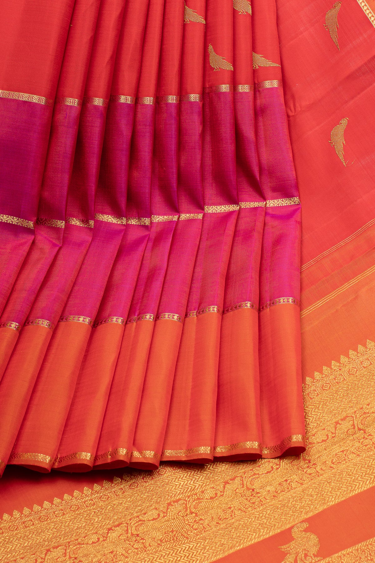 Reddish orange traditional pure kanchipuram silk saree