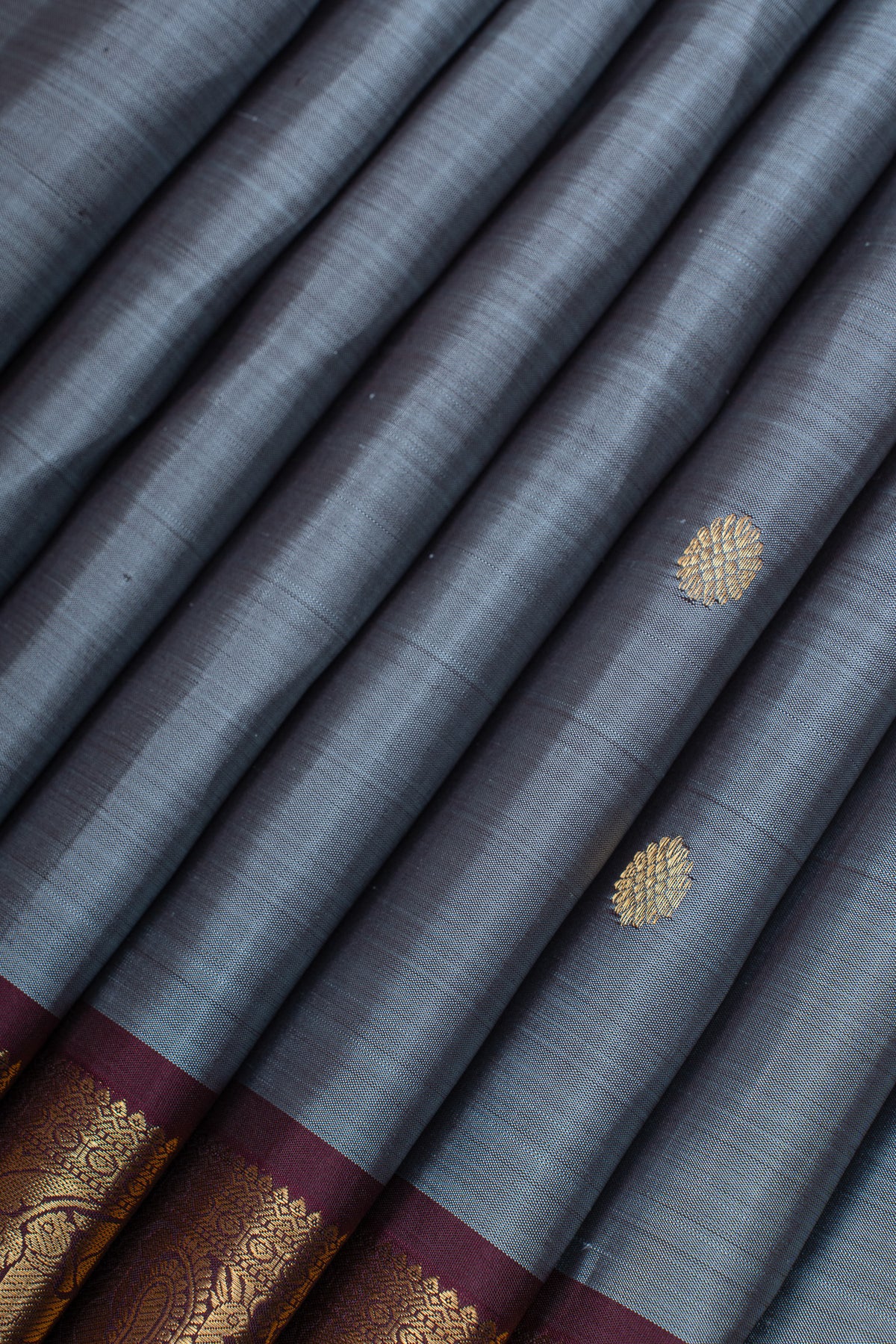 Bluish grey and maroon pure Kanchipuram silk saree