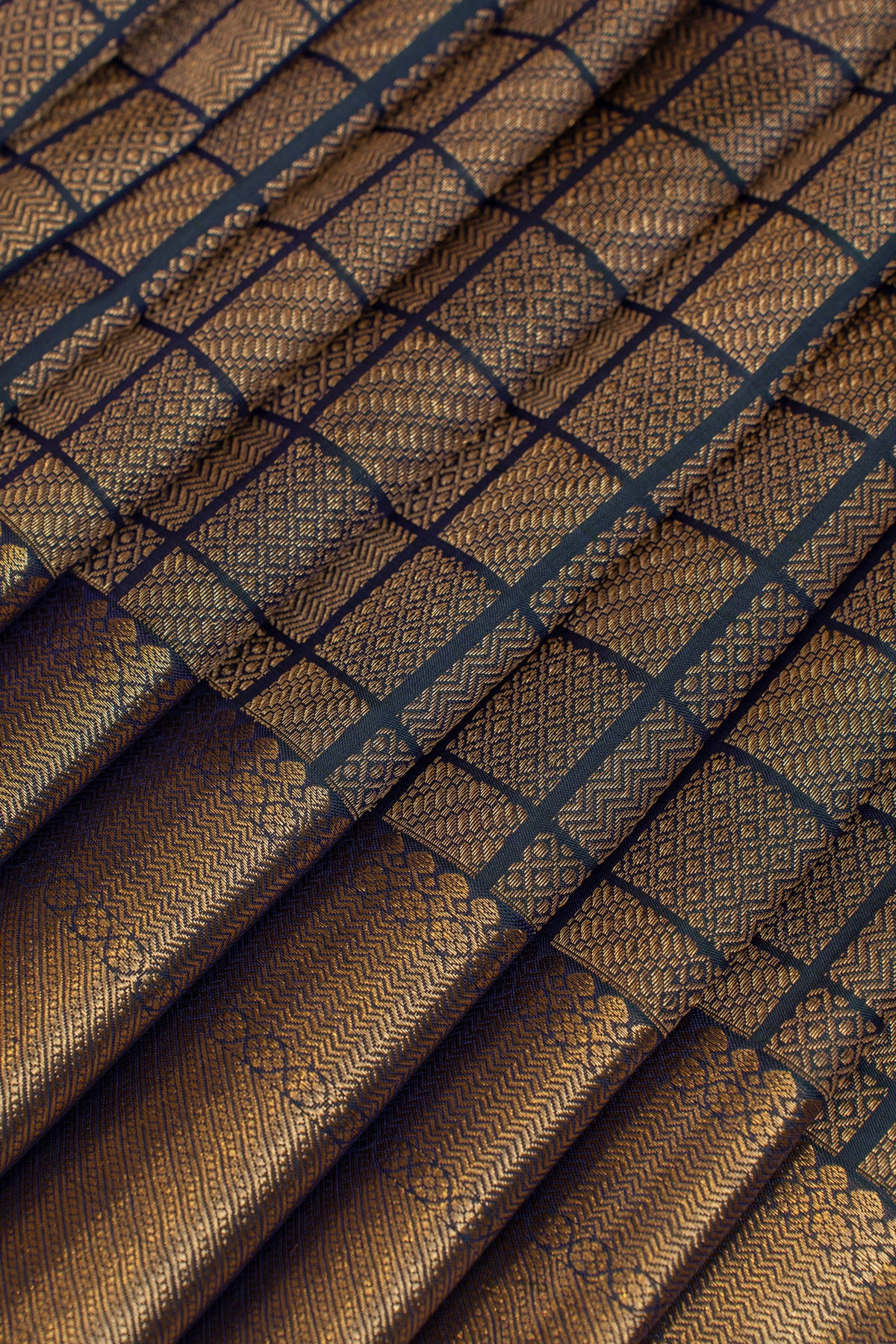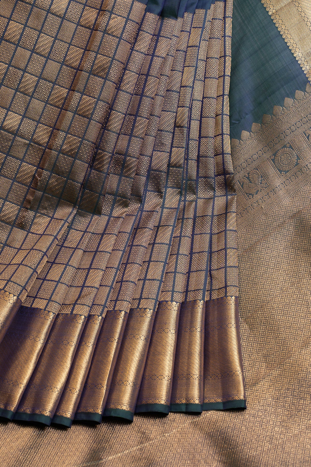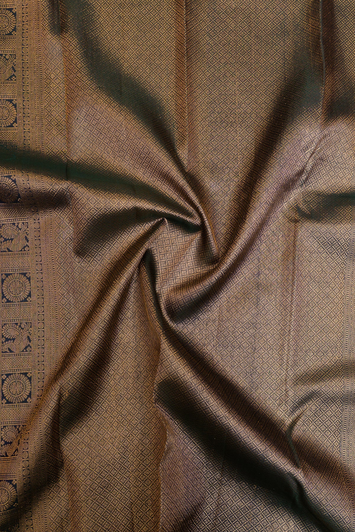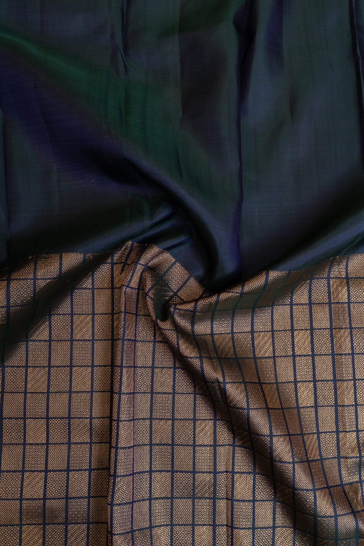 Peacock blue brocade half & half pure Kanchipuram silk saree
