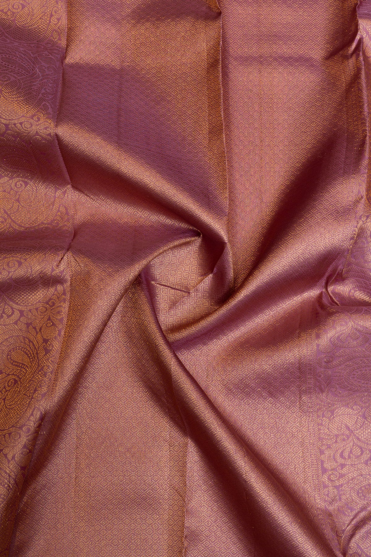 Experience timeless elegance with this purple paisley pure Kanchipuram silk saree. Crafted from luxurious silk, it features intricate paisley motifs that highlight the rich heritage of Kanchipuram weaving. The deep purple shade adds a regal touch, perfect for formal gatherings and special occasions. Its smooth texture and detailed craftsmanship combine to create a sophisticated statement of tradition and style.