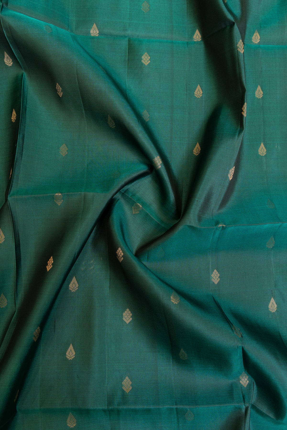 Embrace timeless elegance with this captivating peacock green silk saree, fashioned from pure, supremely soft silk. The rich, jewel-toned green evokes natural beauty and regal sophistication, making it an ideal choice for special occasions and refined gatherings. The premium silk fabric drapes with effortless grace, creating a flattering silhouette while offering exceptional comfort throughout wear. Each movement reveals the fabric's inherent luminosity and fluid movement. Whether you're attending celebrations or seeking a statement piece for your collection, this saree embodies the artistry of traditional weaving combined with contemporary style sensibilities.