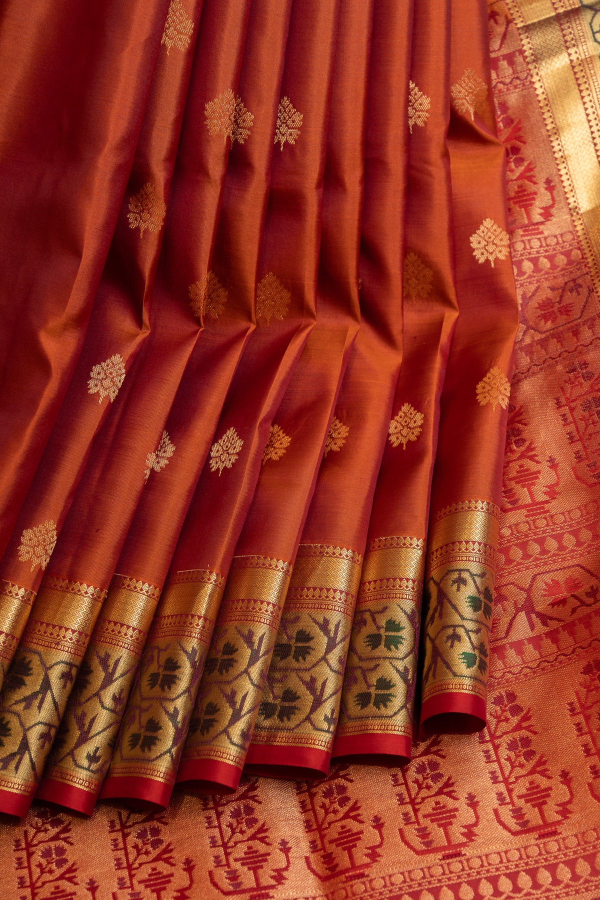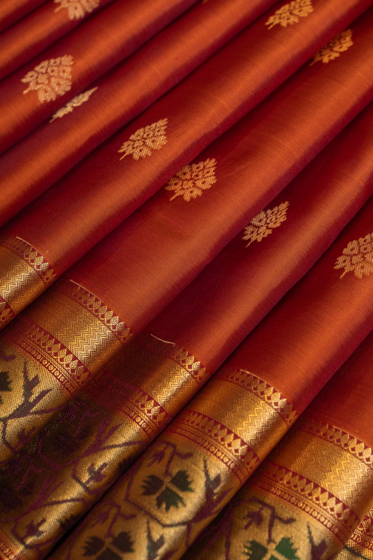 Rust orange Paithani border pure soft silk saree