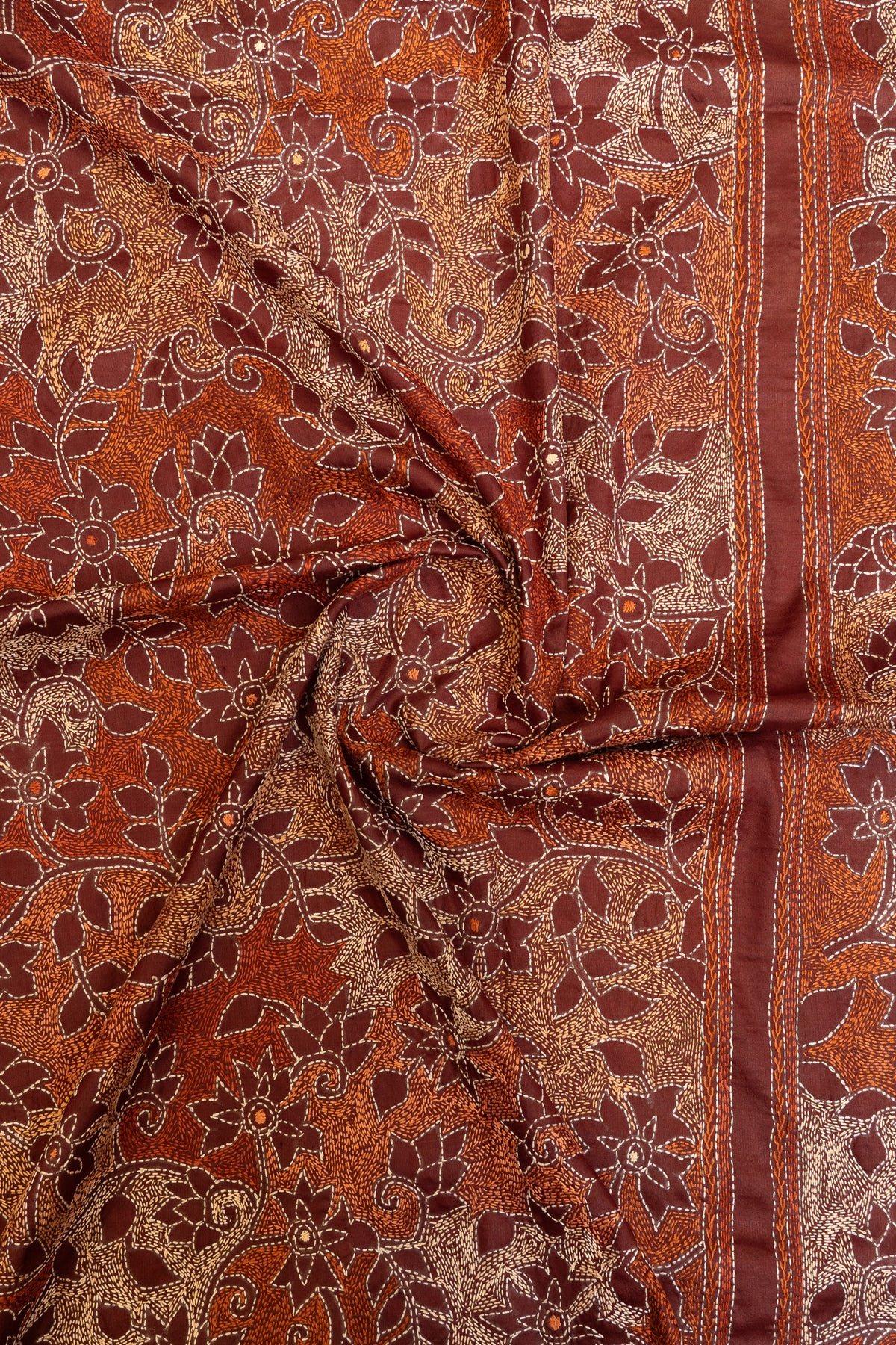 Elevate your elegance with this cream batik Kantha embroidered pure Tussar silk saree. Crafted from breathable, natural Tussar silk, it features intricate Kantha embroidery that highlights artisanal craftsmanship. The subtle batik design enhances its timeless sophistication, making it perfect for refined occasions and festive celebrations. Experience a blend of tradition and grace with every drape.