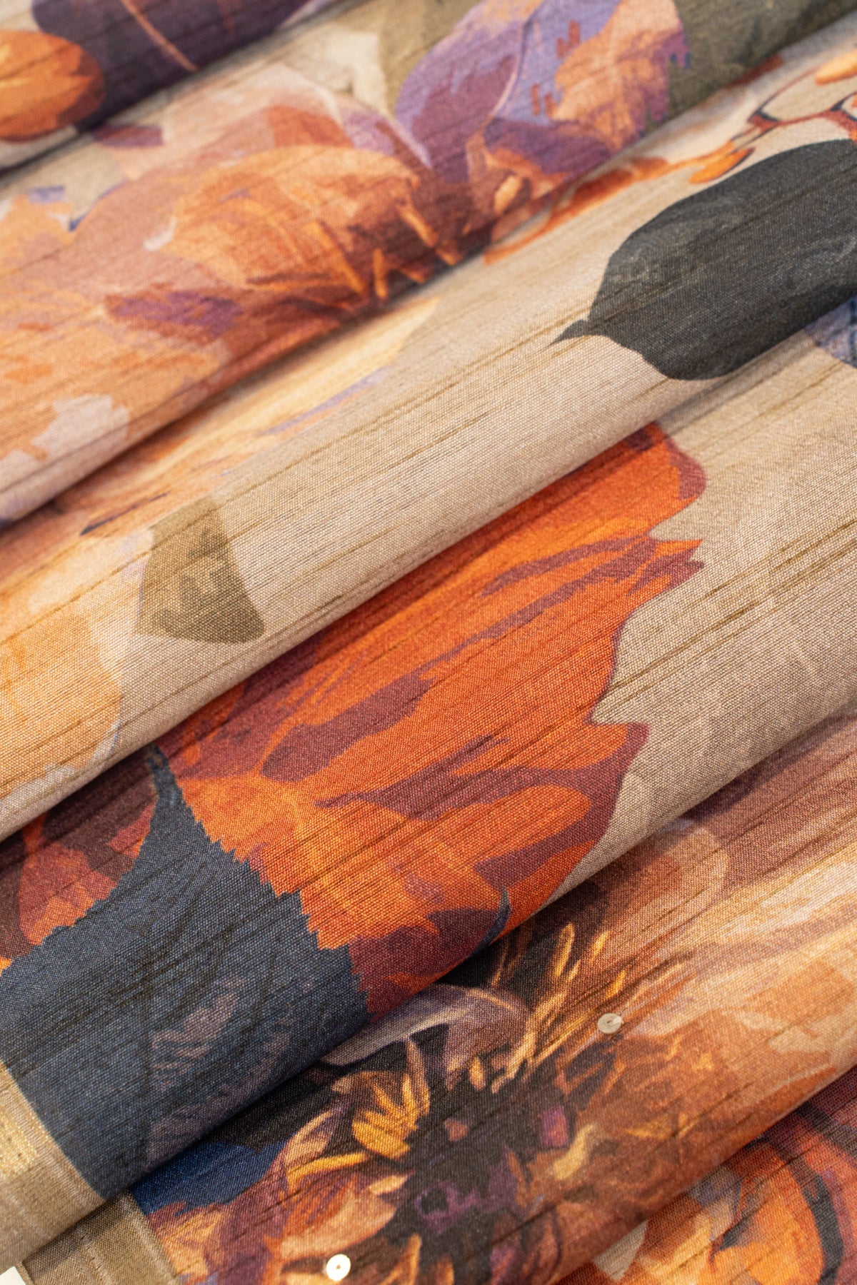 Elevate your traditional wardrobe with our beautiful beige floral printed Tussar saree. Made with a blended material, this saree boasts a delicate and intricate floral design that is perfect for any special occasion. Add a touch of elegance and charm to your look with this unique and versatile saree.