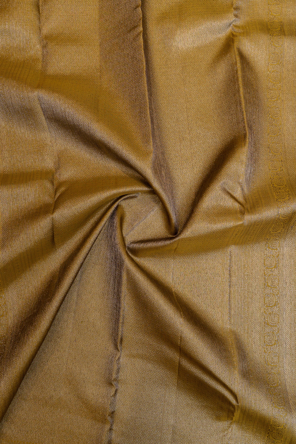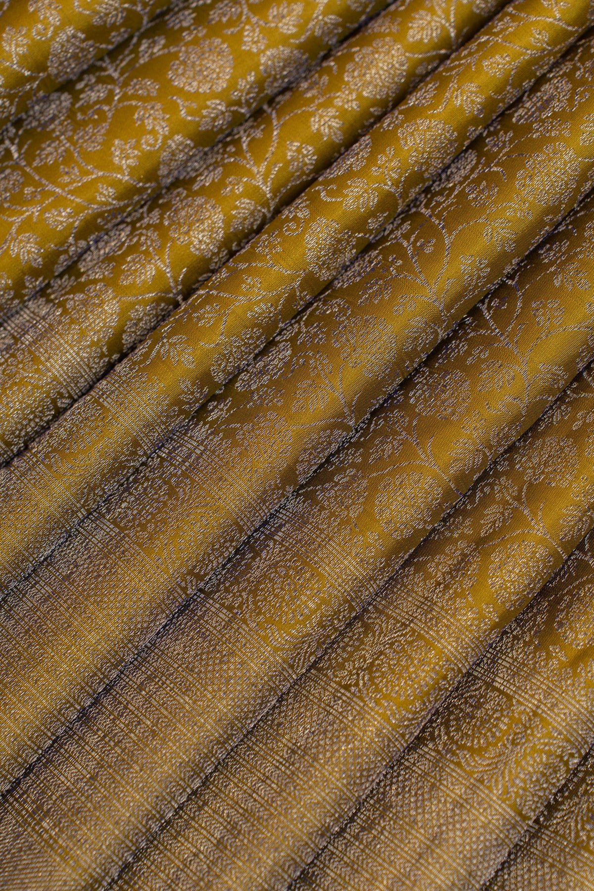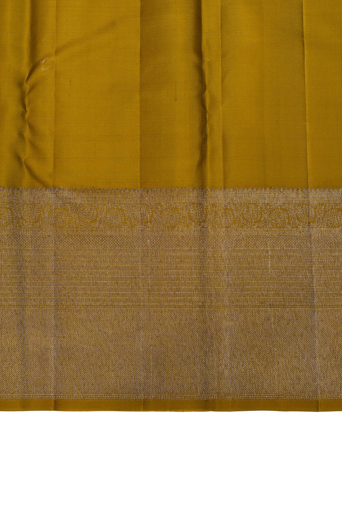 This olive green brocade pure Kanchipuram silk saree exudes understated sophistication. The intricate brocade patterns enhance the rich olive silk, offering a harmonious blend of traditional artistry and contemporary elegance. Perfect for elegant occasions, it ensures a graceful and polished look.