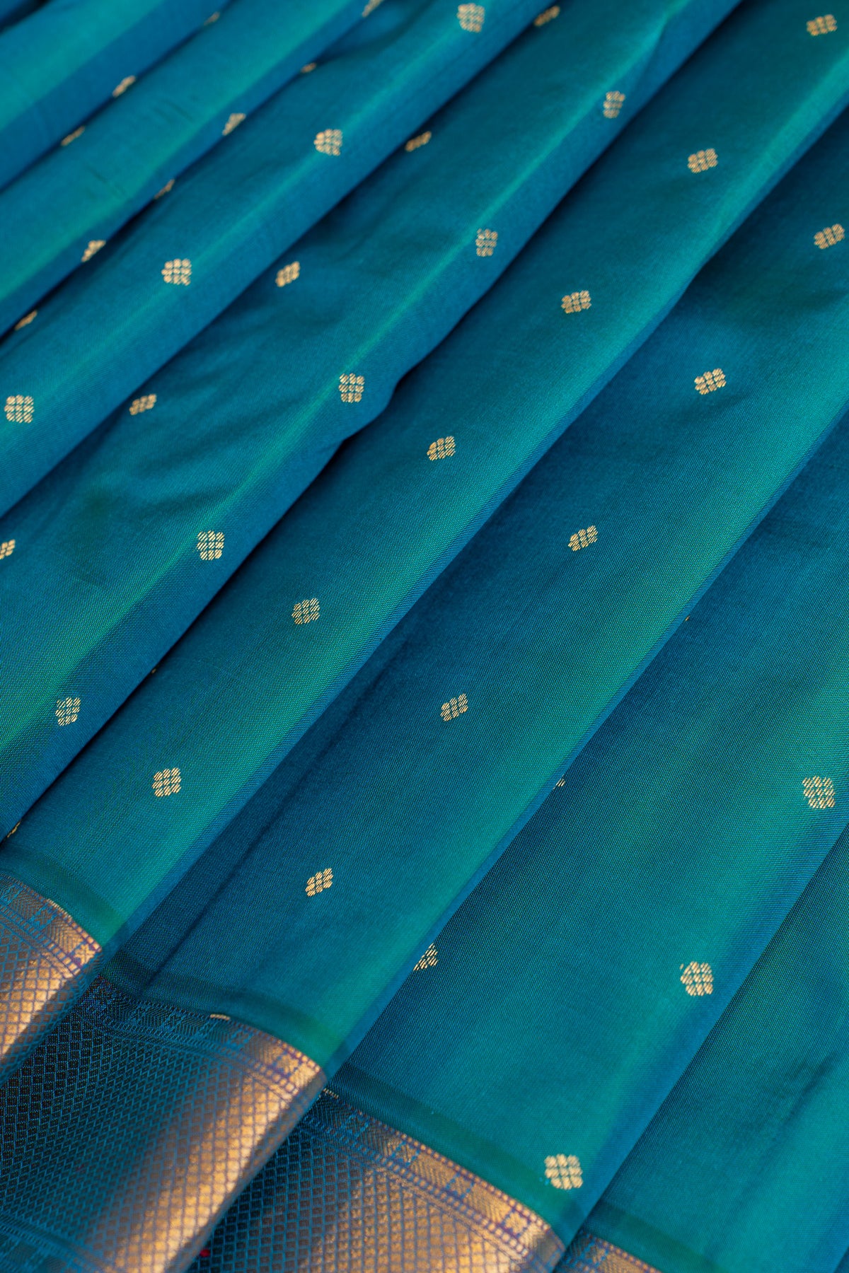 Peacock blue traditional pure Kanchipuram silk saree