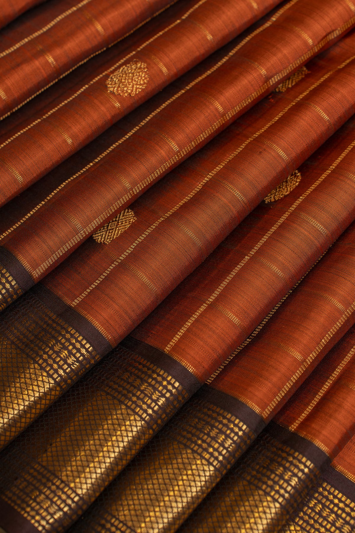 Rust orange zari checks pure Kanchipuram silk saree