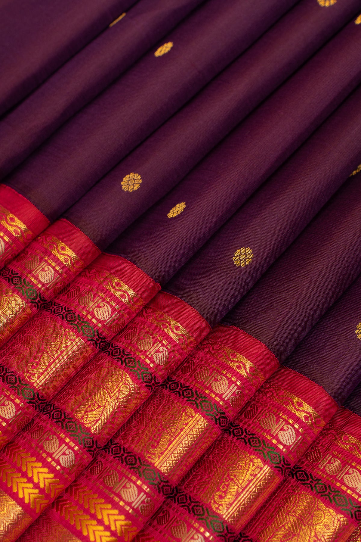 Aubergine purple varisaipettu pure Kanchipuram Silk saree