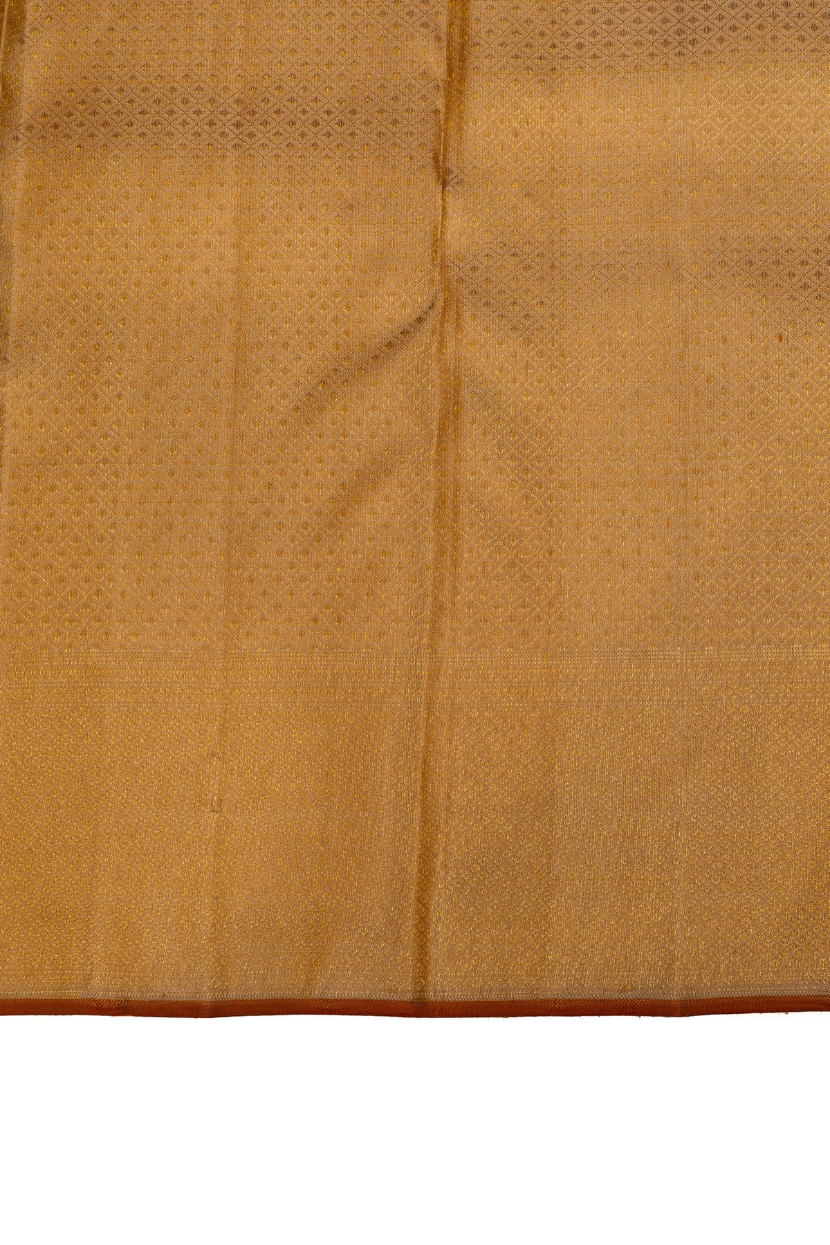 Discover the striking allure of this pure Kanchipuram silk saree, featuring bold black and rust orange hues accentuated by grand borders. Expertly woven with rich silk, its dramatic color contrast and intricate border design evoke timeless elegance and refined craftsmanship. Perfect for formal events, this saree makes a confident statement while embodying sophisticated tradition.