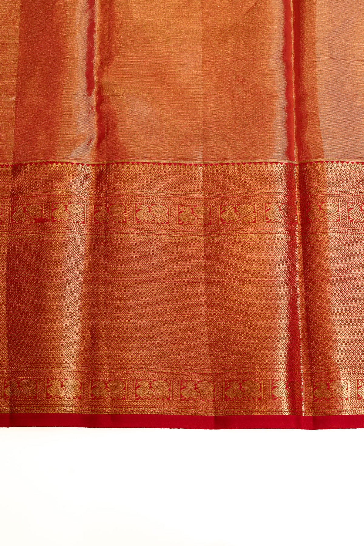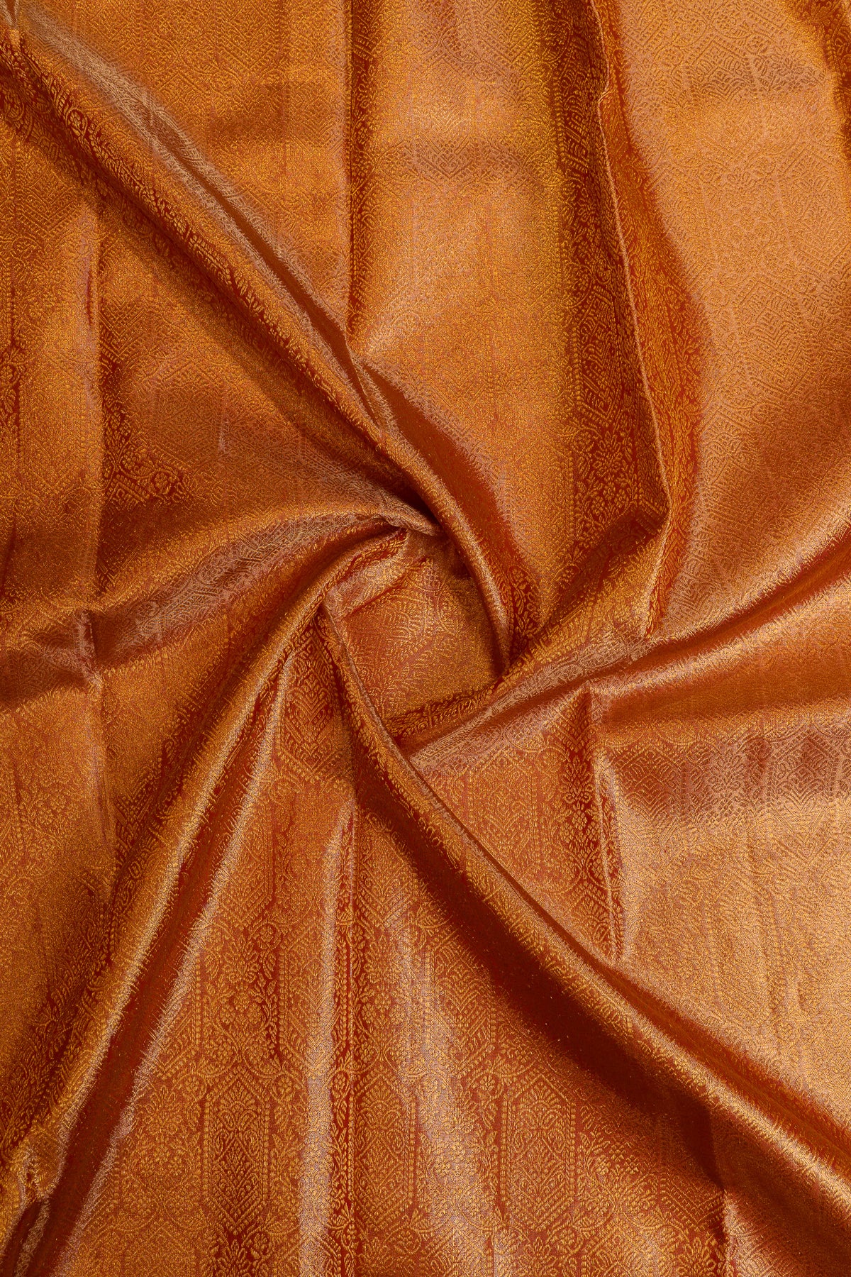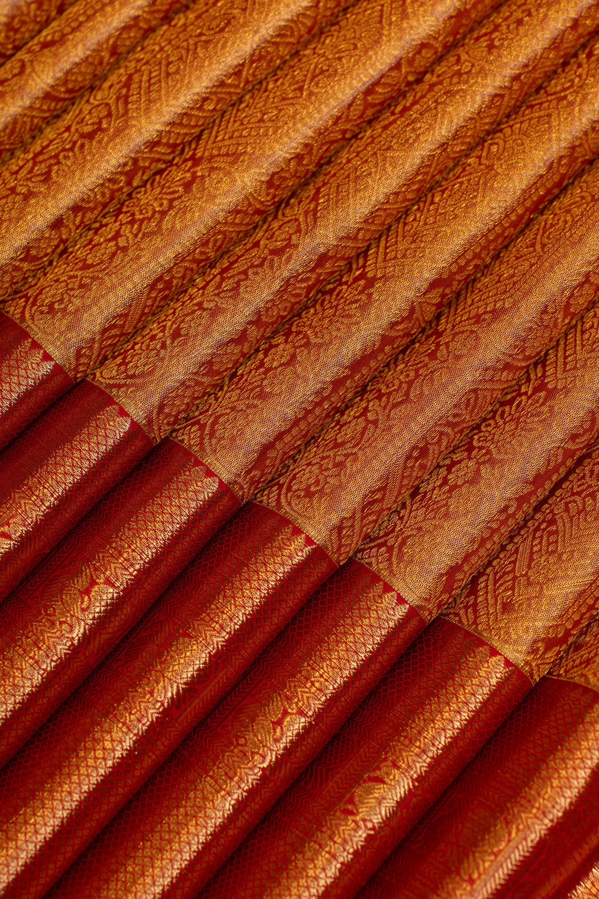 This red brocade pure Kanchipuram silk saree exudes classic sophistication through its intricate brocade weaving and rich silk texture. The vibrant red hue paired with detailed patterns highlights expert craftsmanship, making it an elegant choice for weddings and festive occasions. Its luxurious feel and timeless design ensure a graceful and distinguished appearance.